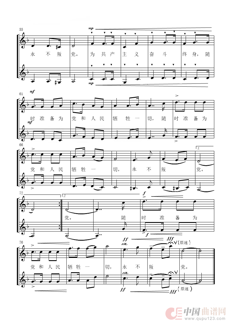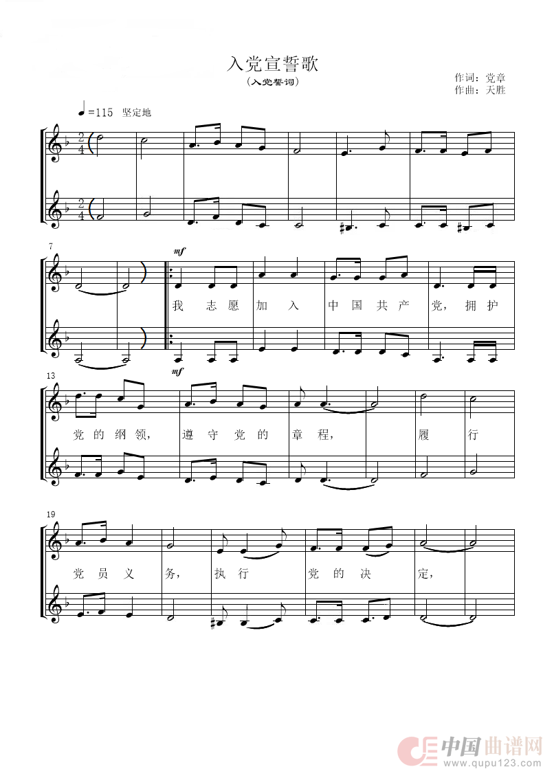 曲谱:入党宣誓歌(入党誓词)(二声部合唱五线谱)