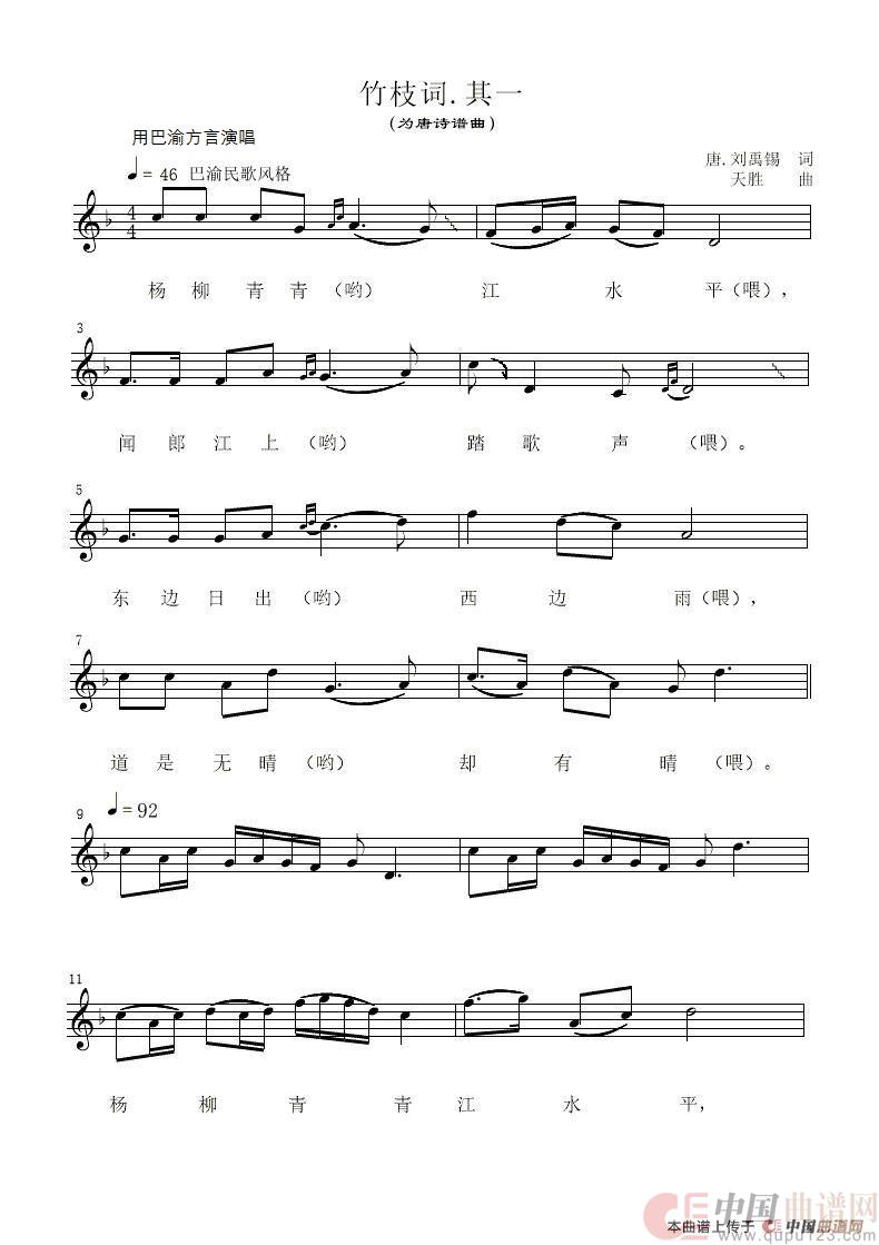曲谱:竹枝词.其一(为唐诗谱曲)(五线谱)