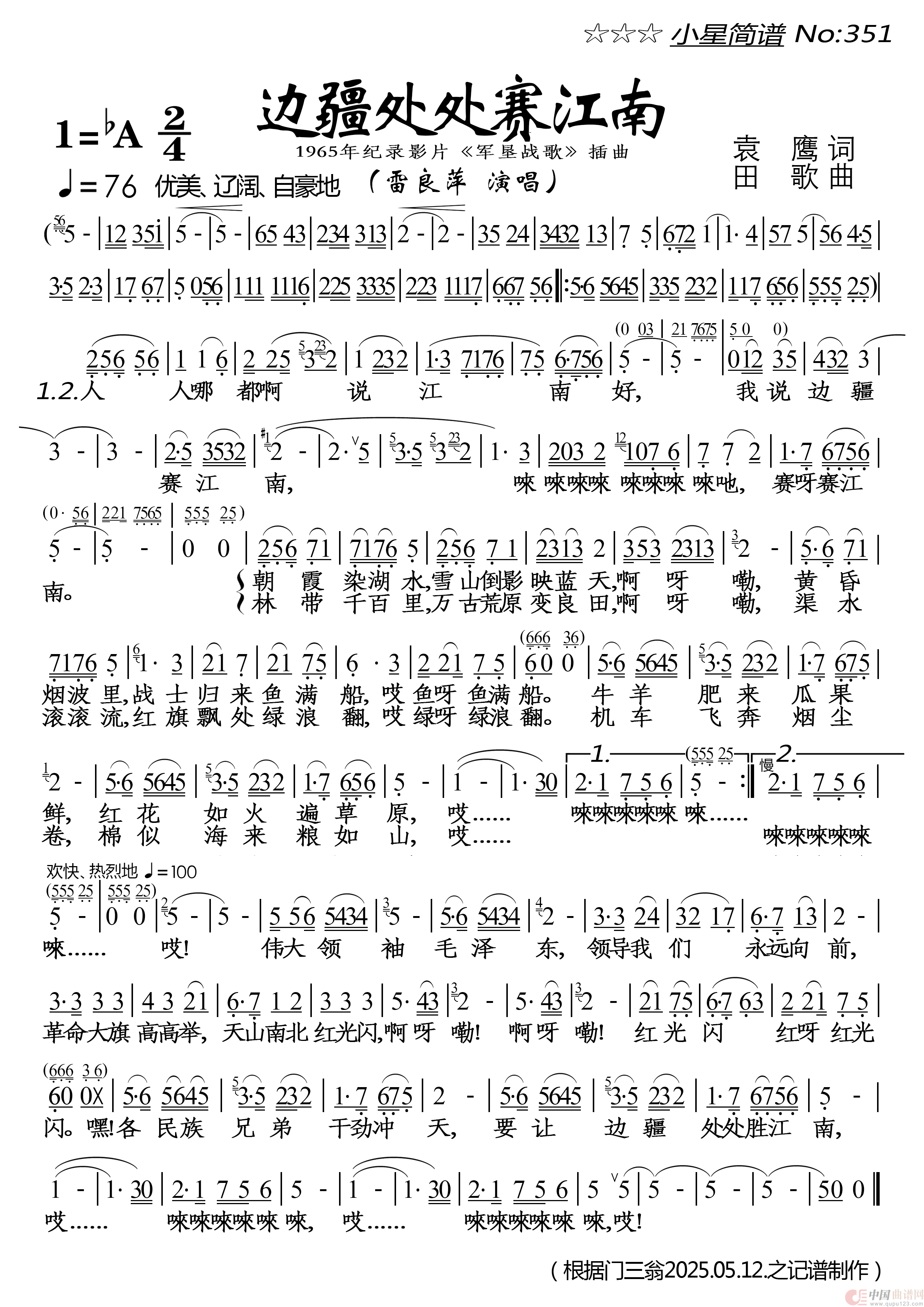 曲谱:边疆处处赛江南