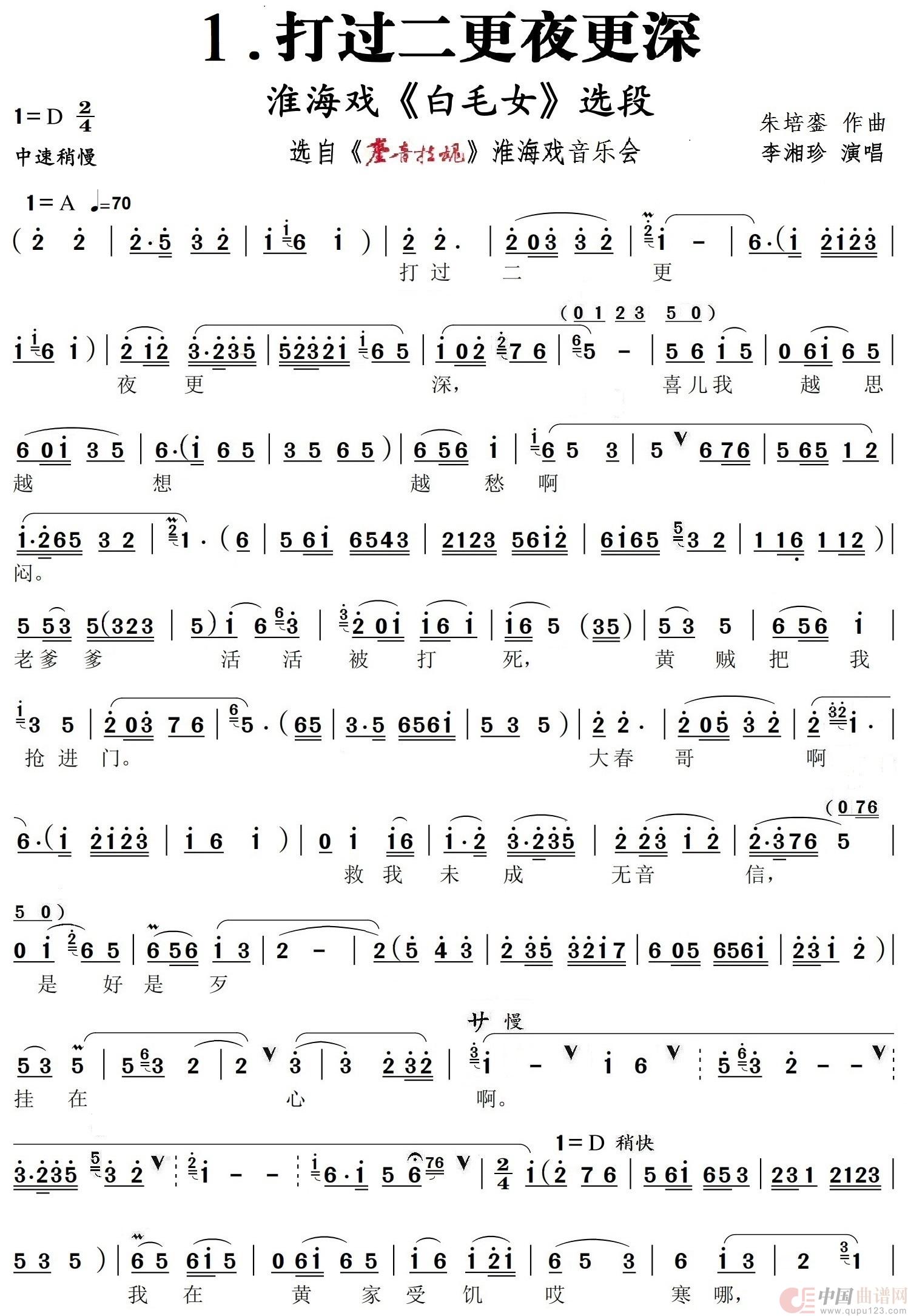曲谱:打过二更夜更深(淮海戏《白毛女》选段)