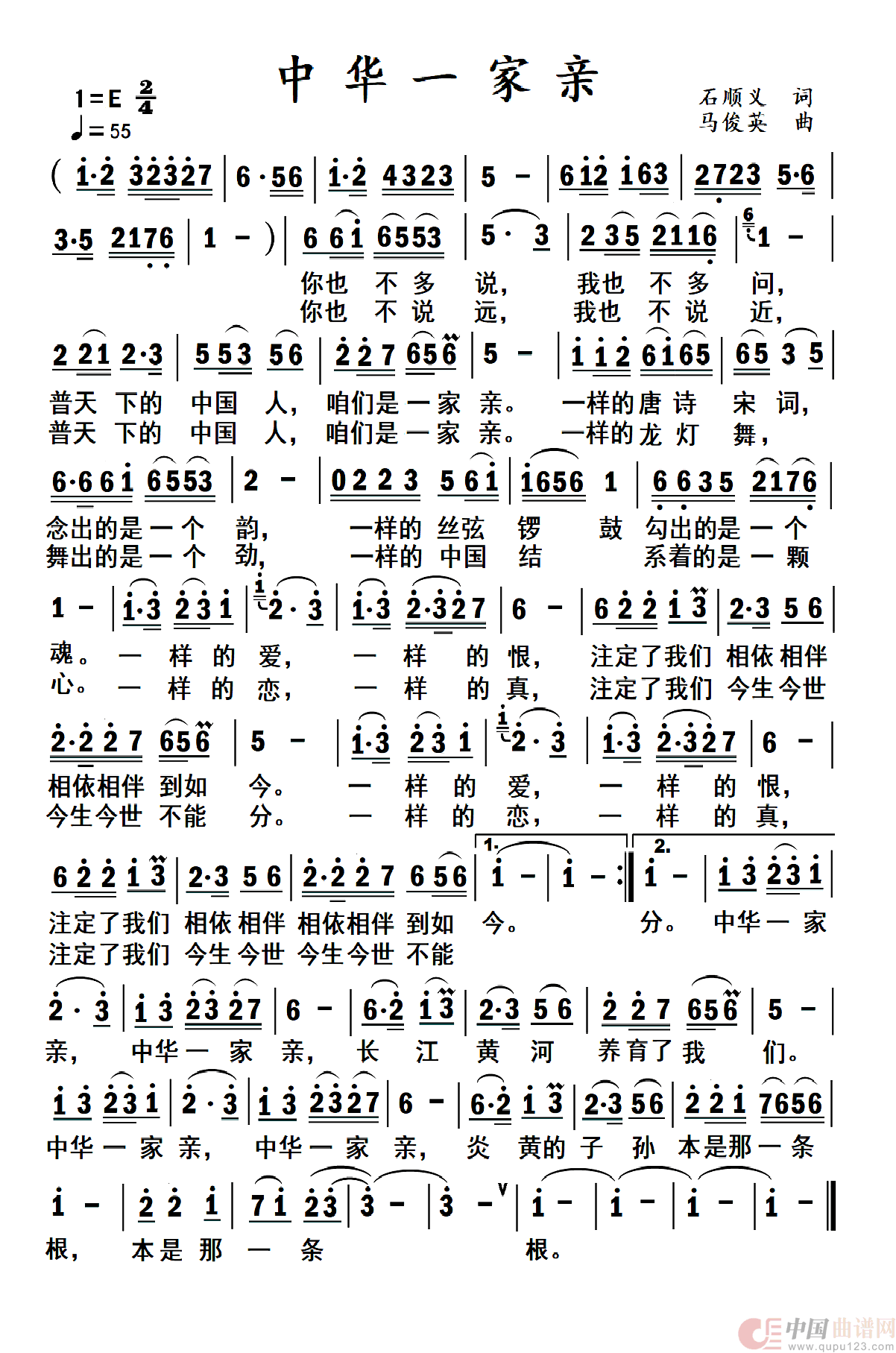曲谱:中华一家亲