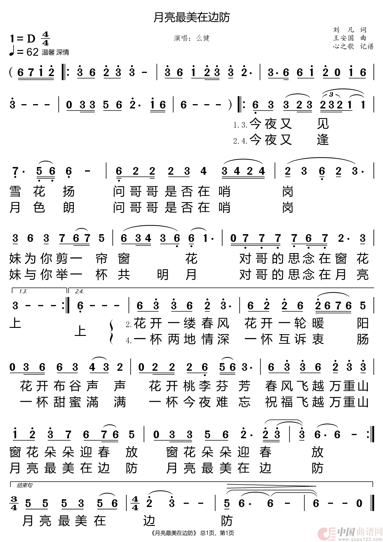 曲谱:月亮最美在边防(么健)