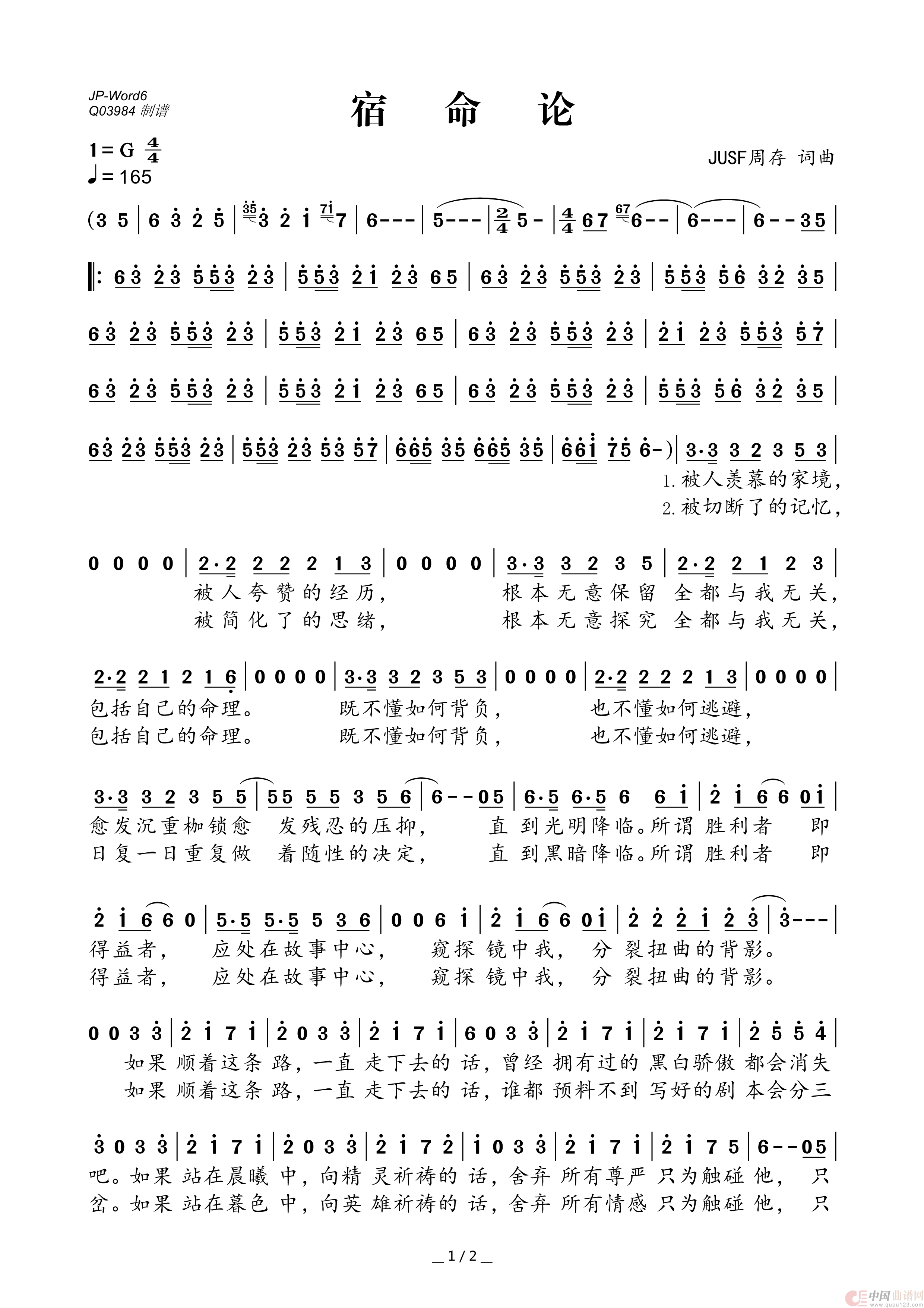 中国曲谱网所有曲谱及资料均为作者提供或网友推荐收集整理而来,仅供爱好者学习和研究使用,版权归原作者所有。如本站内容有侵犯您的合法权益,请和我们取得联系,我们将立即改正或删除。