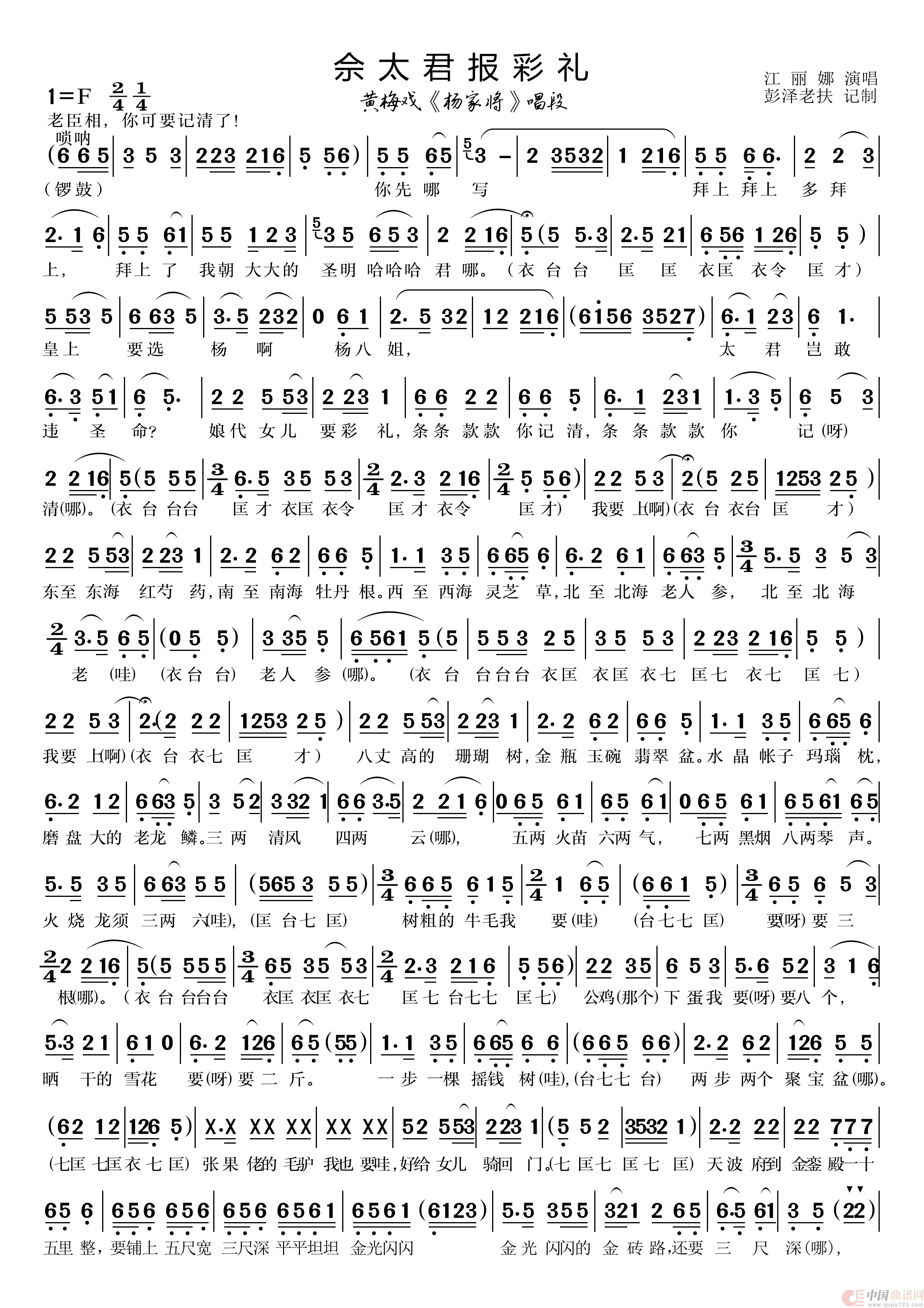 曲谱:佘太君报彩礼(黄梅戏《杨门女将》唱段)