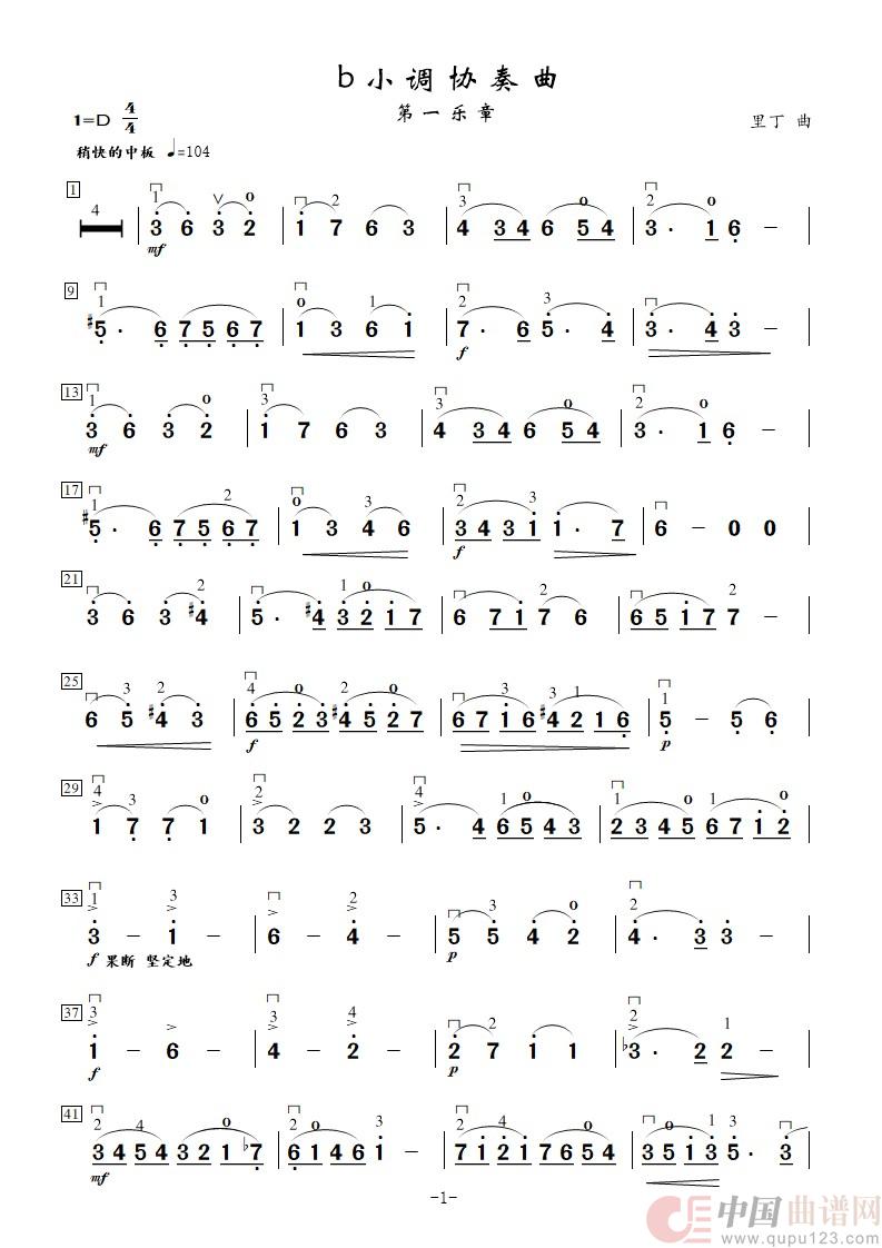 曲谱:b小调协奏曲第一乐章(小提琴曲(简谱))