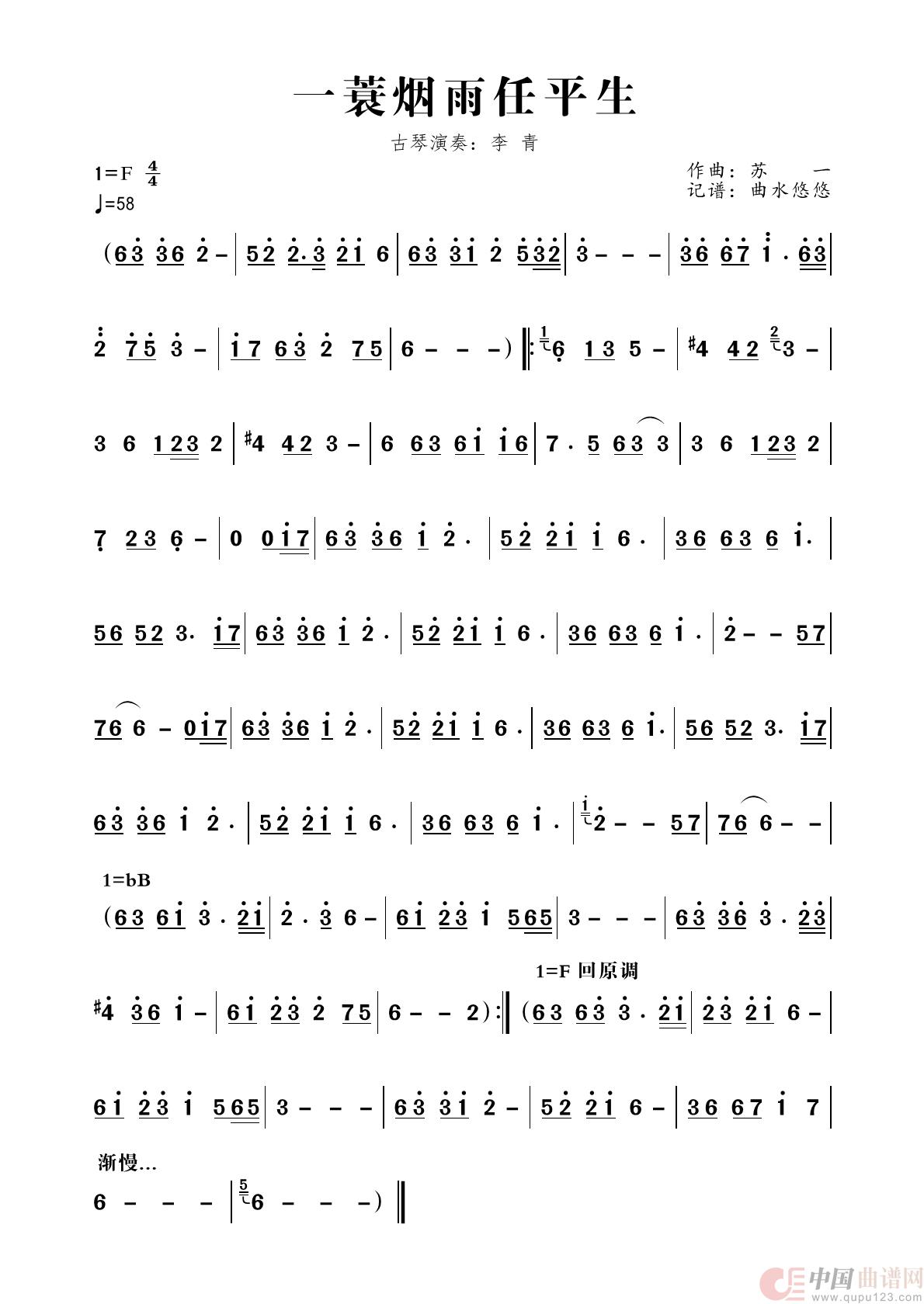 中国曲谱网所有曲谱及资料均为作者提供或网友推荐收集整理而来,仅供爱好者学习和研究使用,版权归原作者所有。如本站内容有侵犯您的合法权益,请和我们取得联系,我们将立即改正或删除。