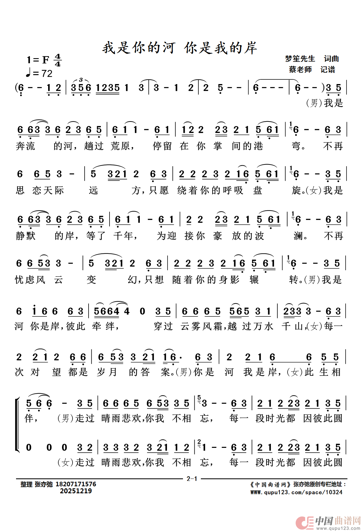 曲谱:我是你的河 你是我的岸(亦弛整理)