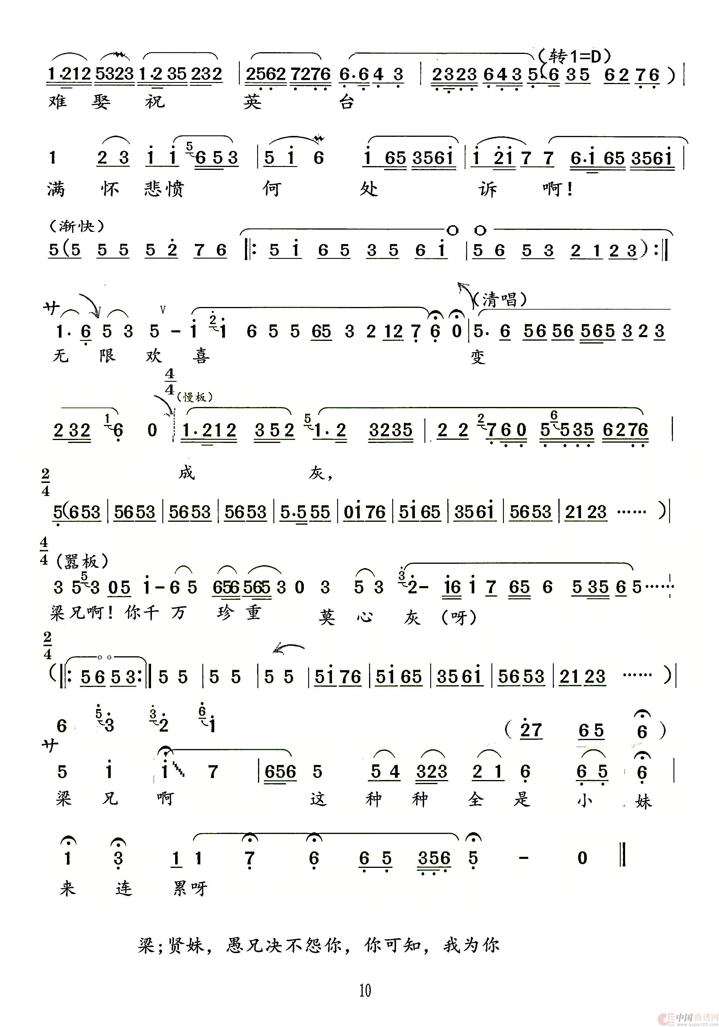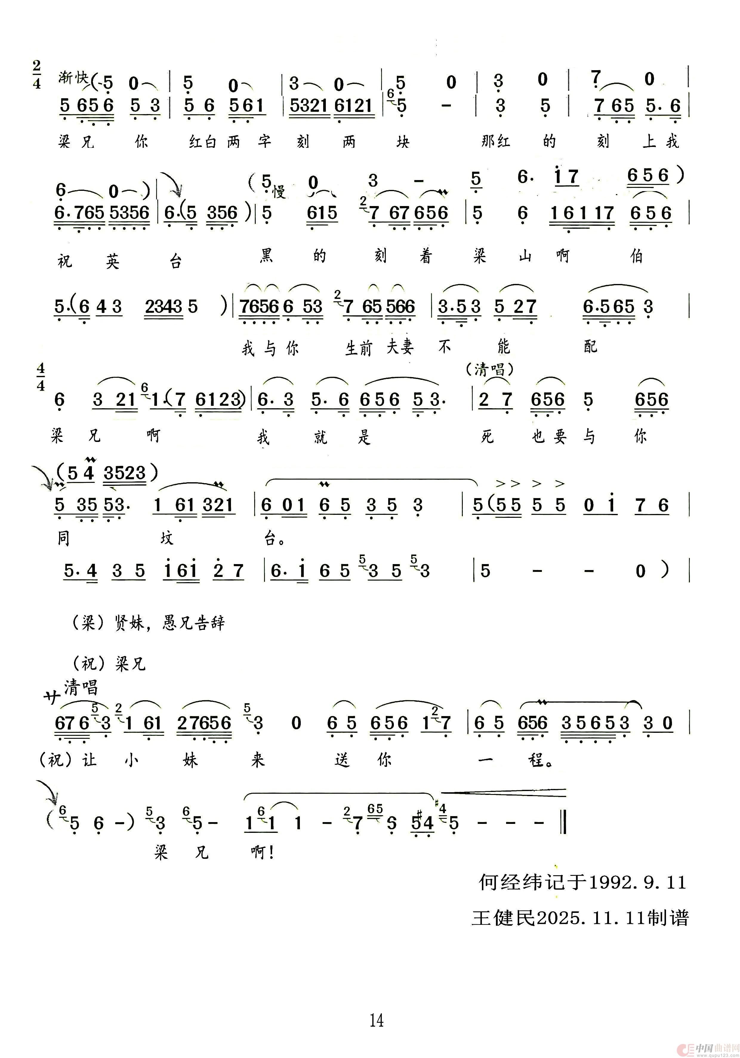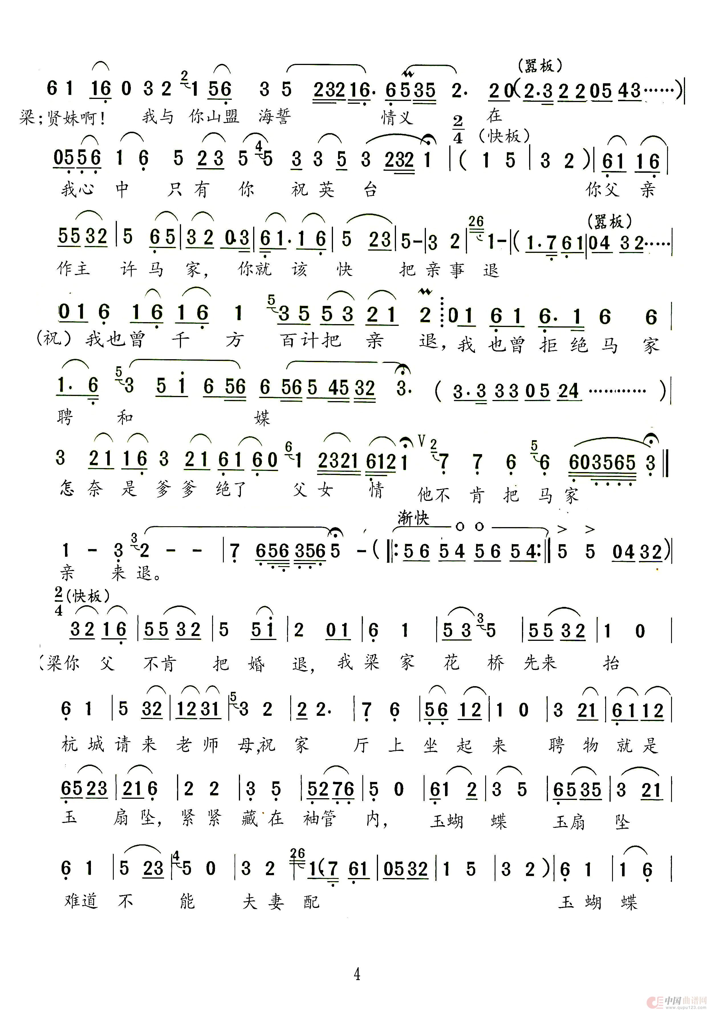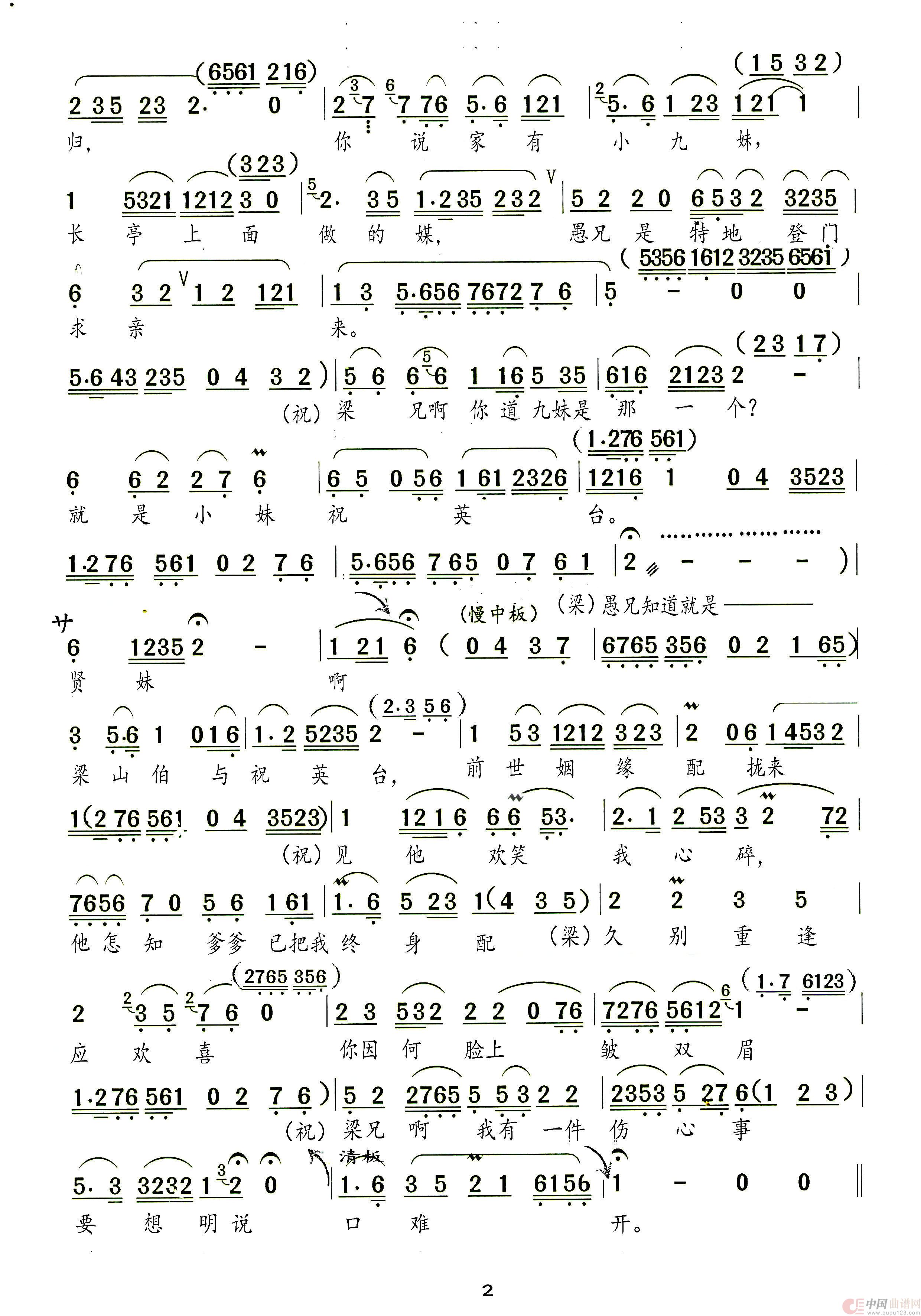 曲谱:楼台会(越剧《梁山伯与祝英台》选段)