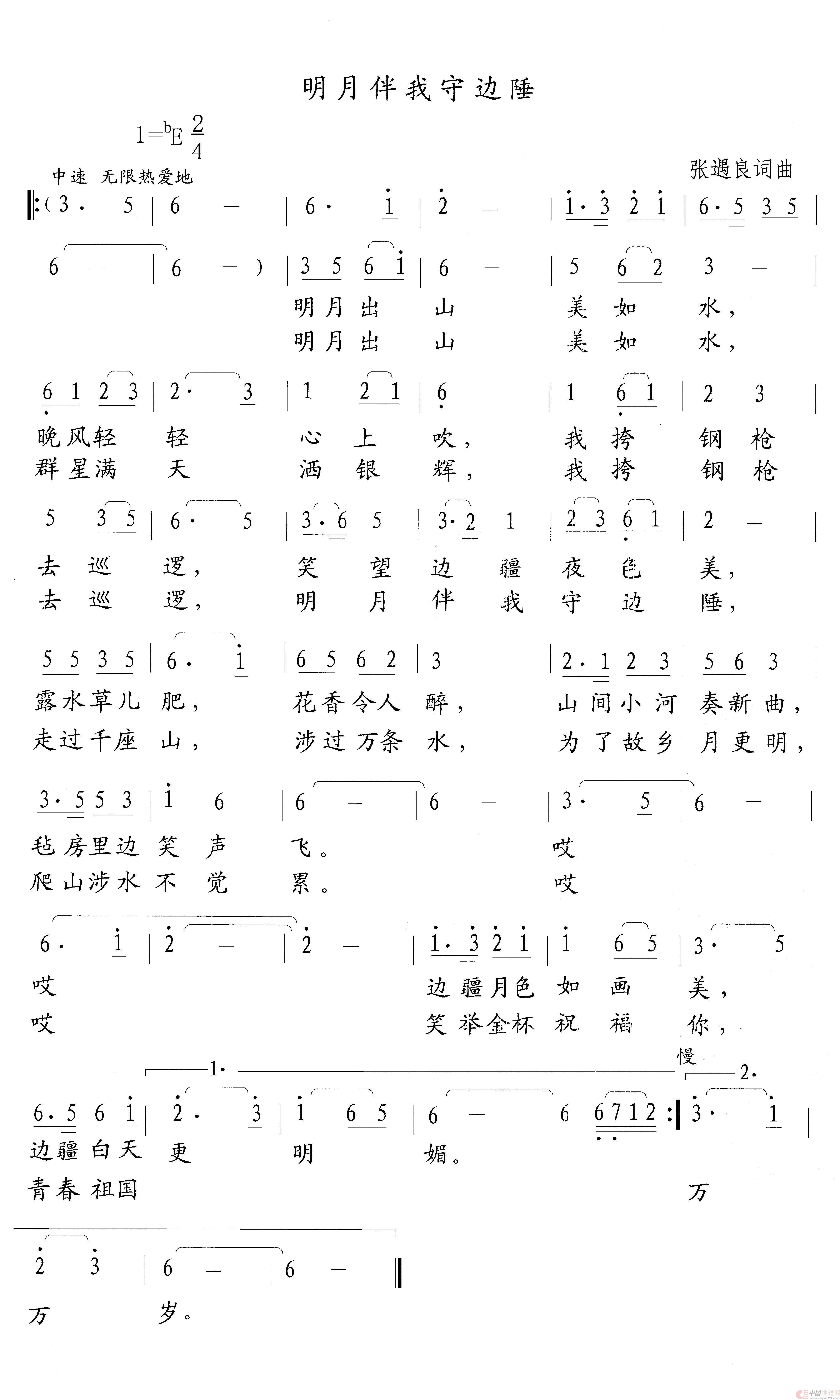 曲谱:明月伴我守边陲