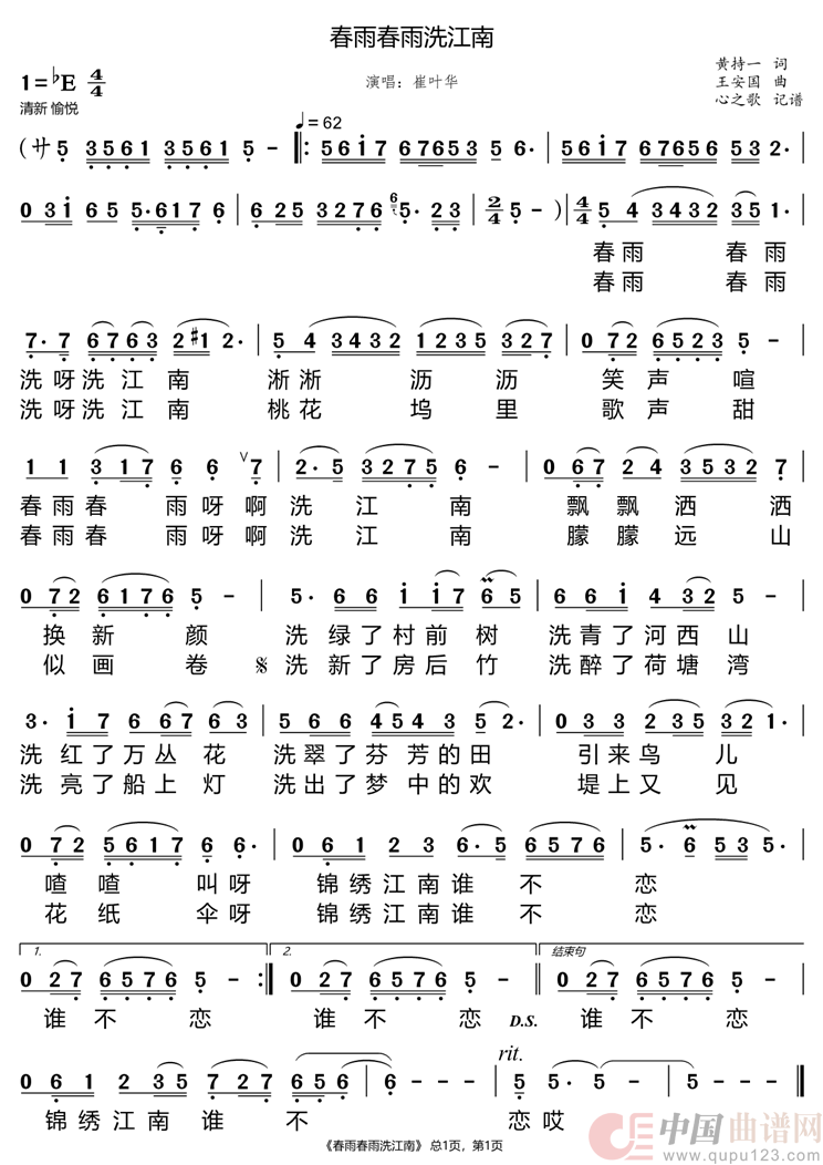 曲谱:春雨春雨洗江南(崔叶华)