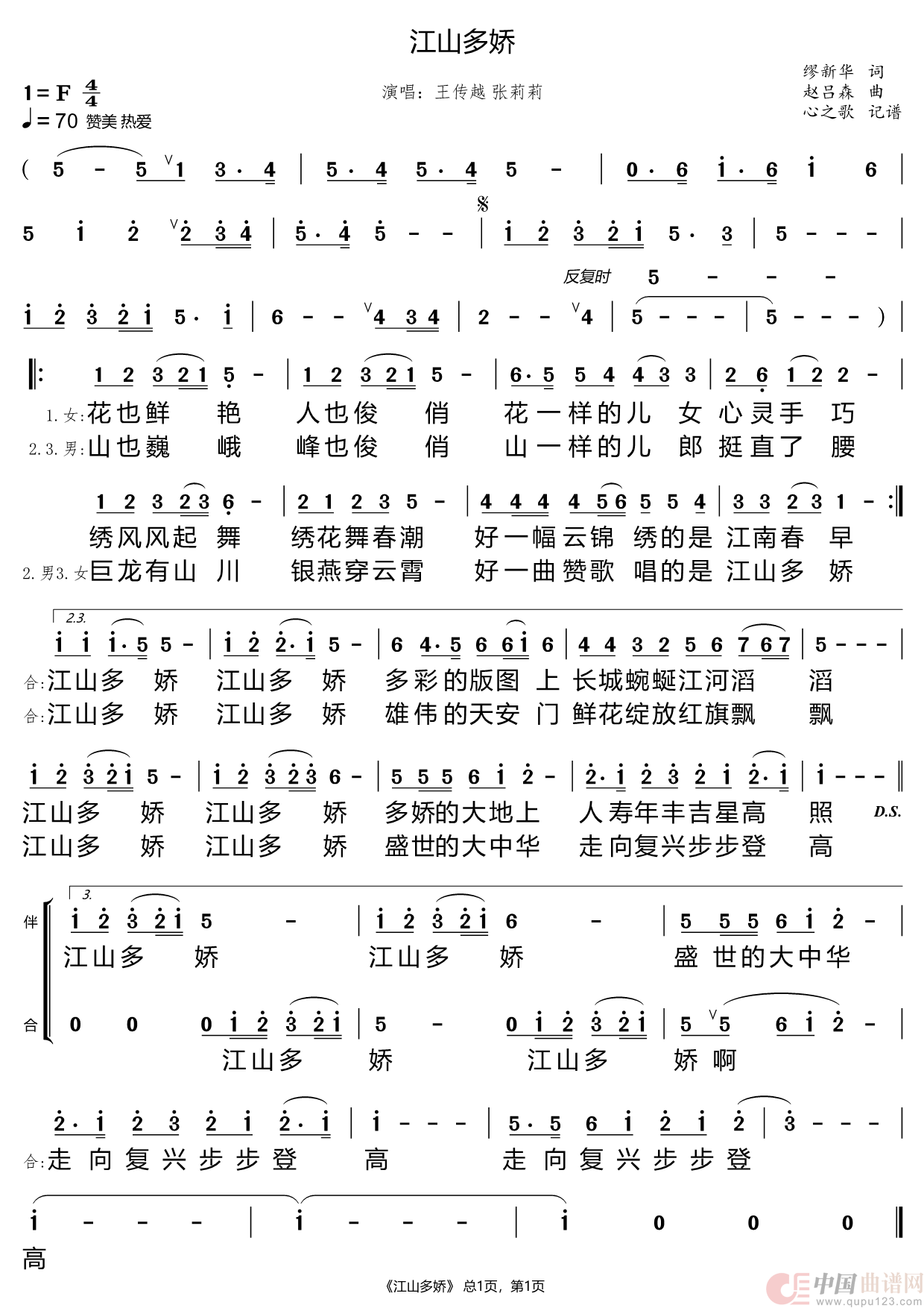 曲谱:江山多娇(王传越 张莉莉)