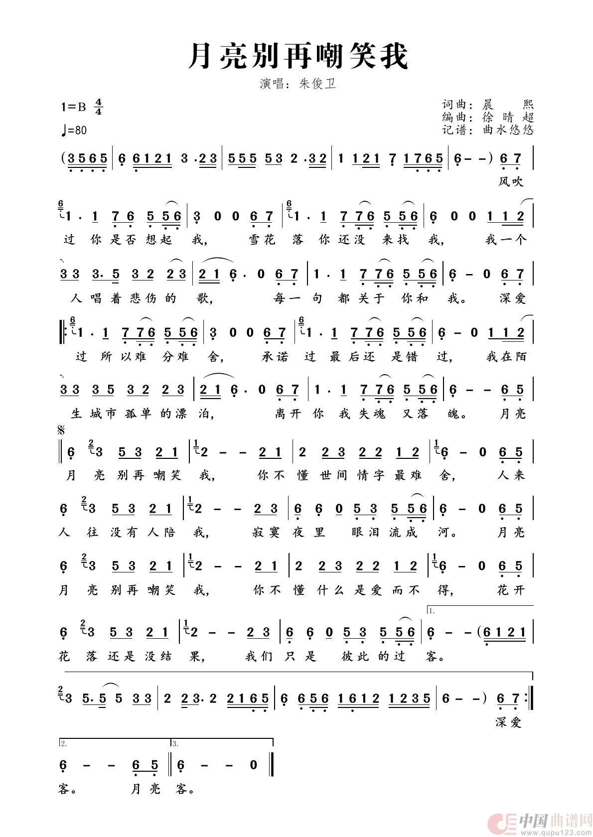 曲谱:月亮别再嘲笑我