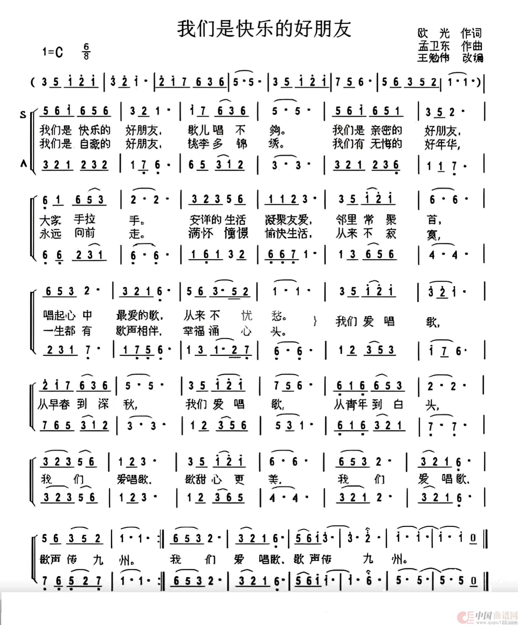 曲谱:我们是快乐的好朋友(二声部合唱简谱)