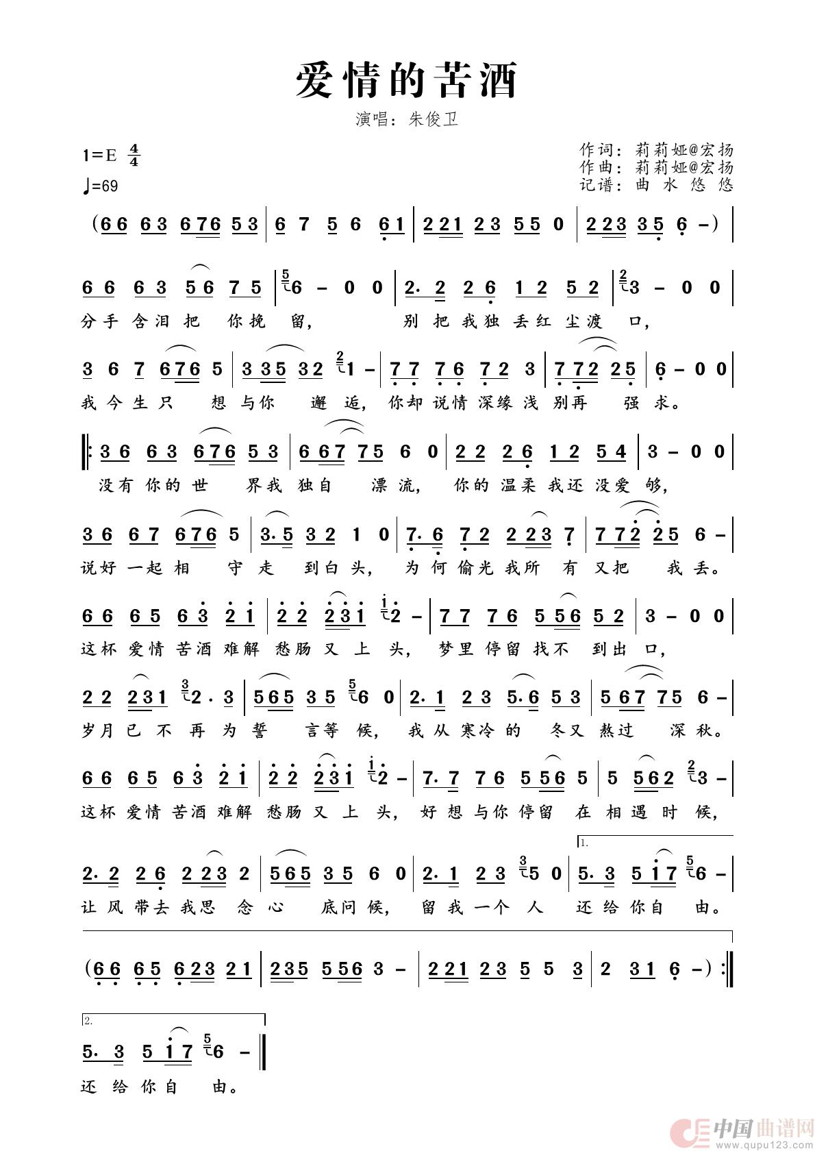 曲谱:爱情的苦酒