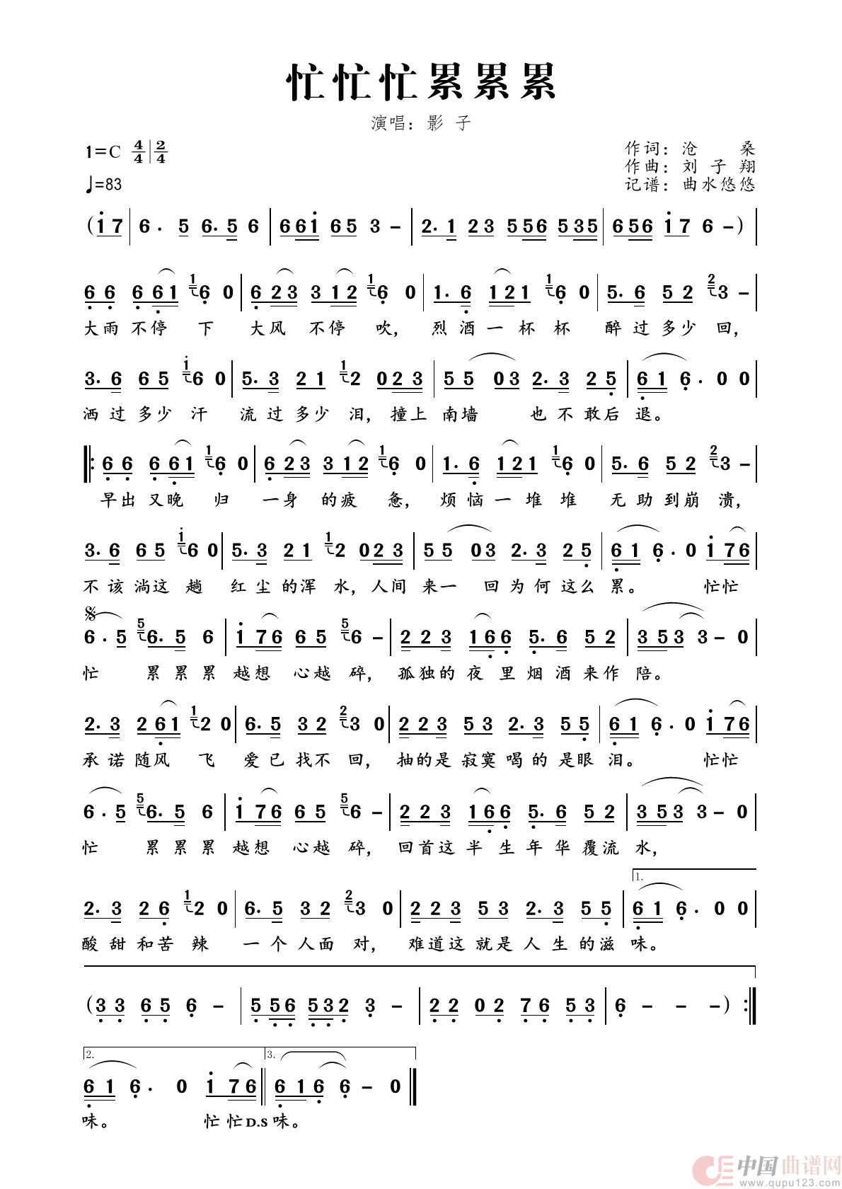 曲谱:忙忙忙累累累