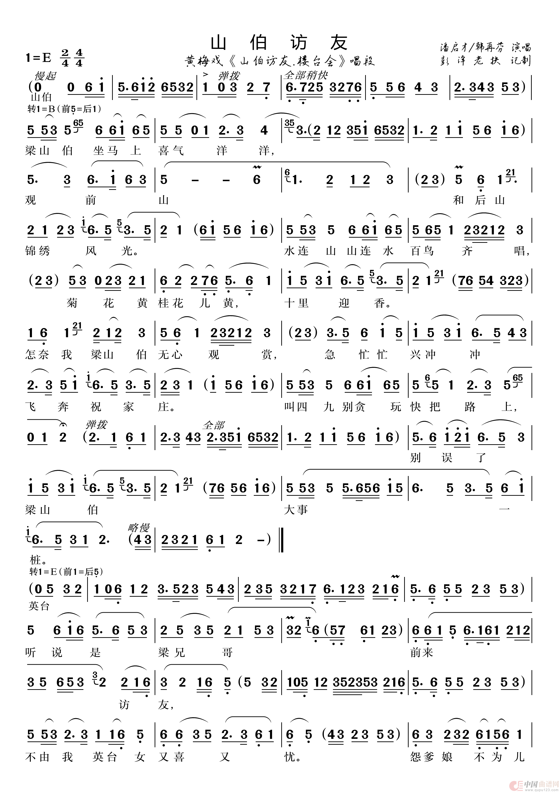 曲谱:山伯访友(黄梅戏《梁祝》唱段)