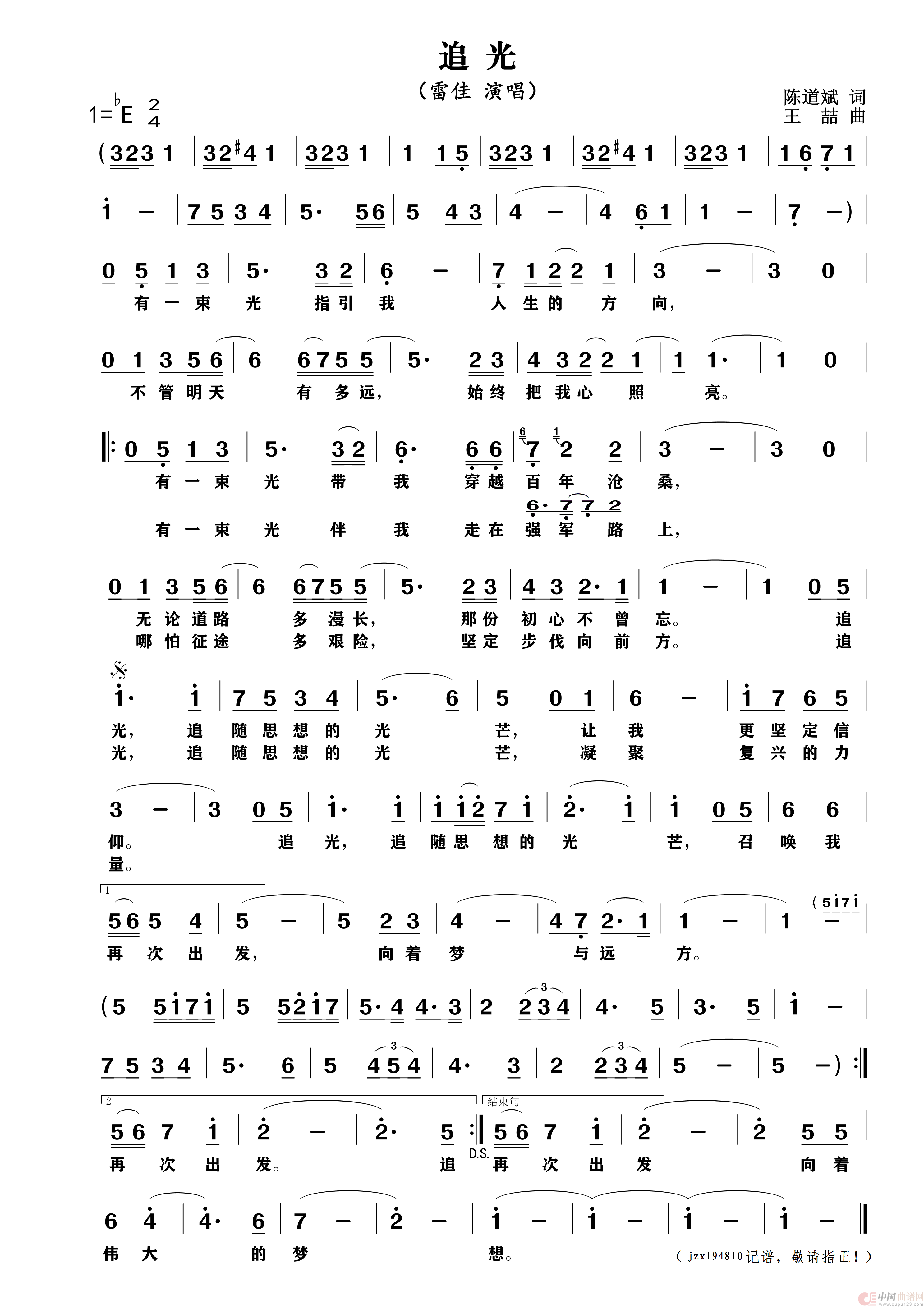 曲谱:追光