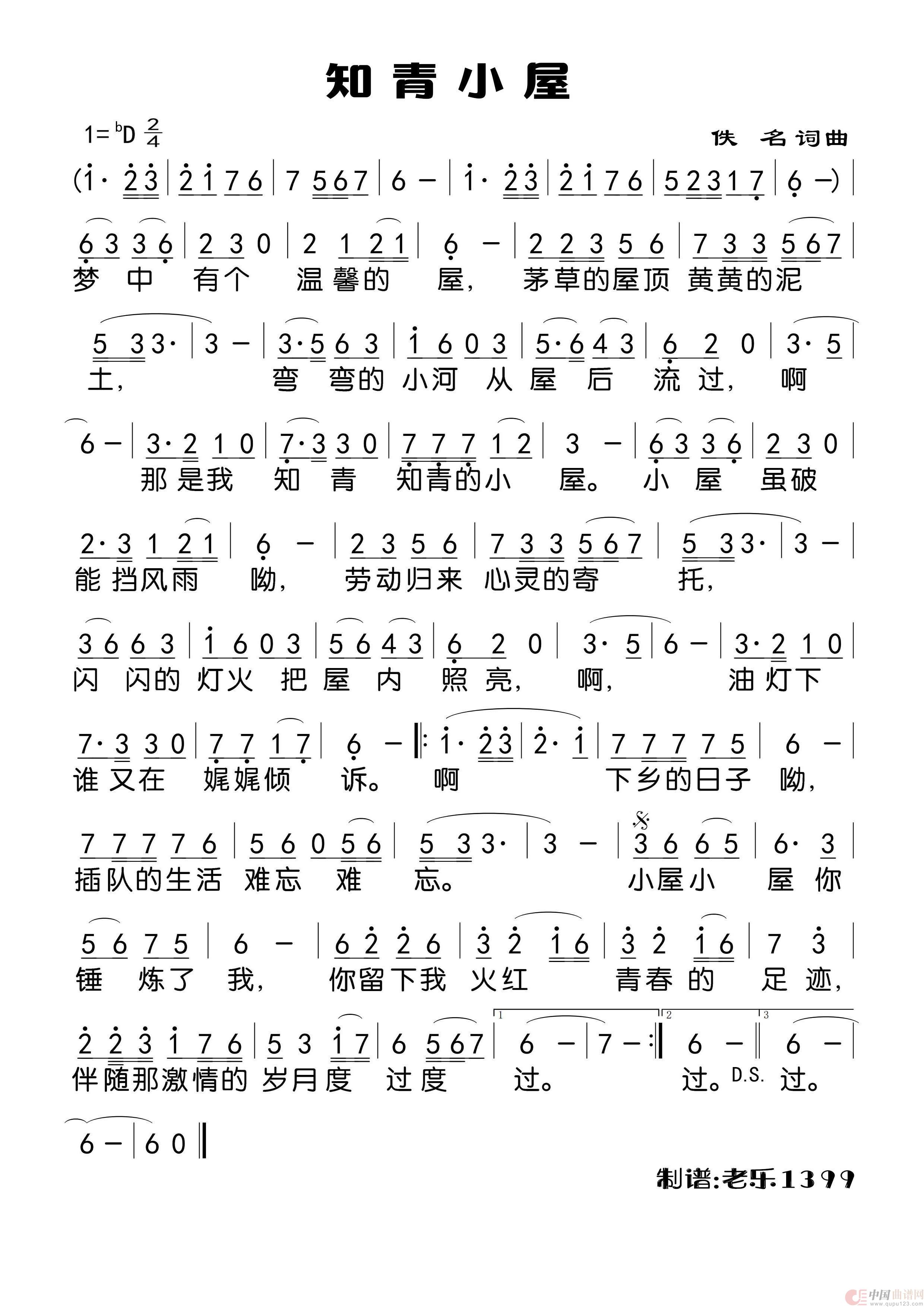 曲谱:知青小屋(大字版)