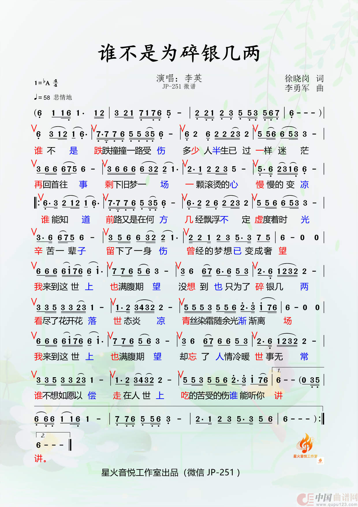 曲谱:谁不是为碎银几两