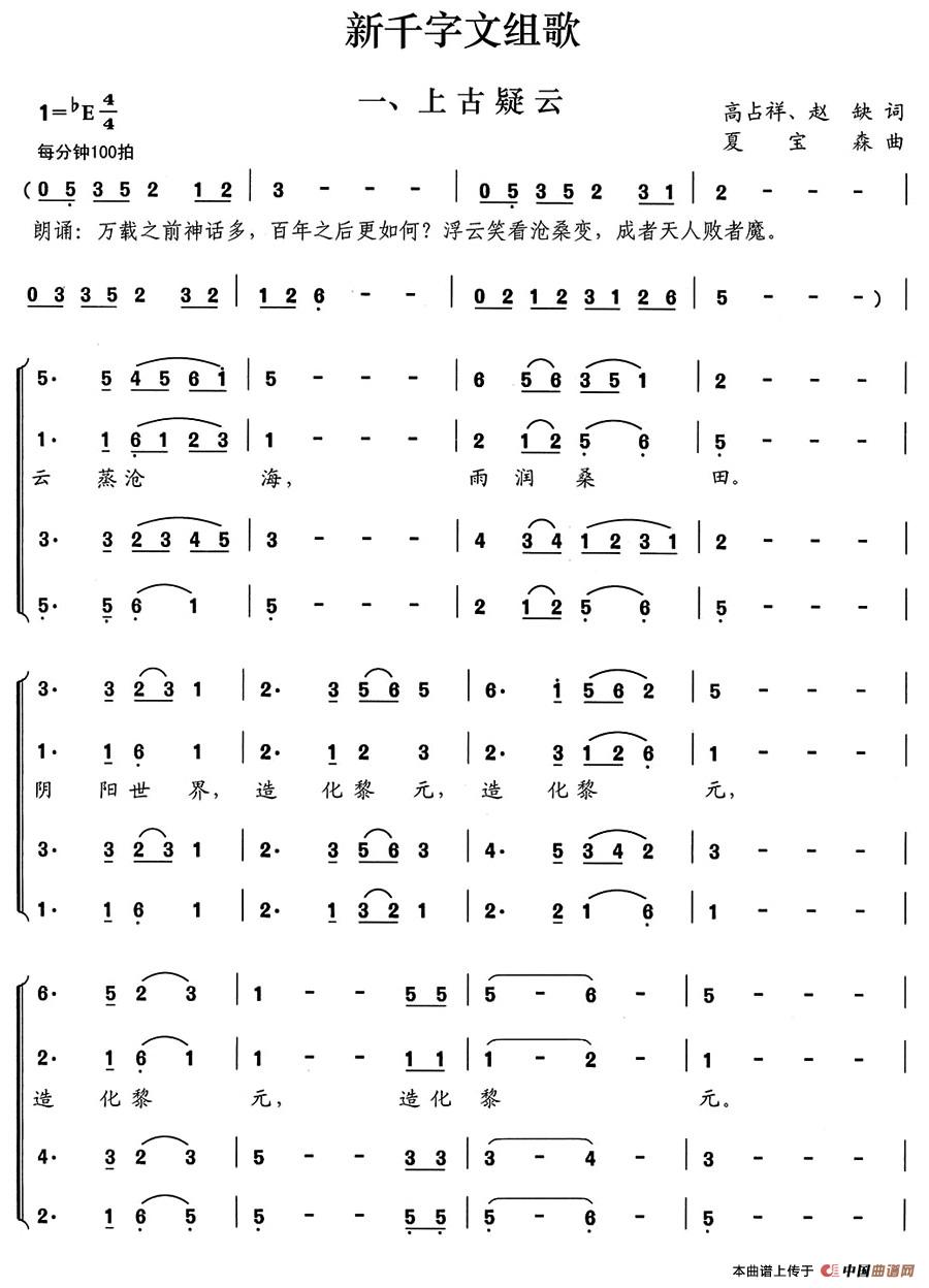 关于《新千字文组歌一、上古疑云》曲谱的评论