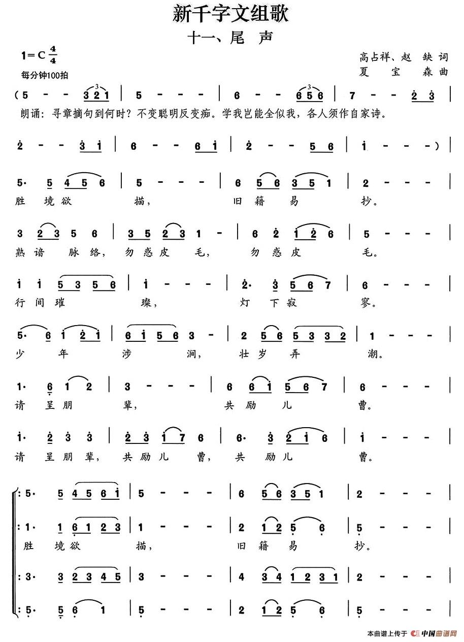 关于《新千字文组歌十一、尾声》曲谱的评论