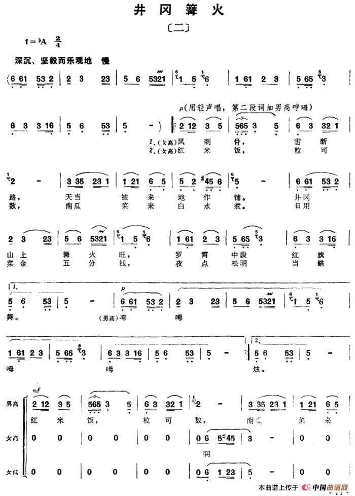 关于《组歌井冈山颂〔二〕井冈篝火》曲谱的评论