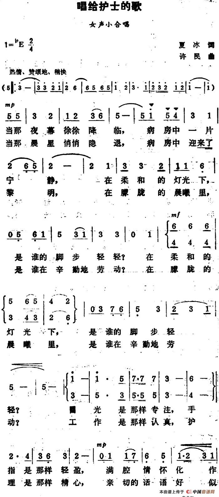 关于《唱给护士的歌》曲谱的评论