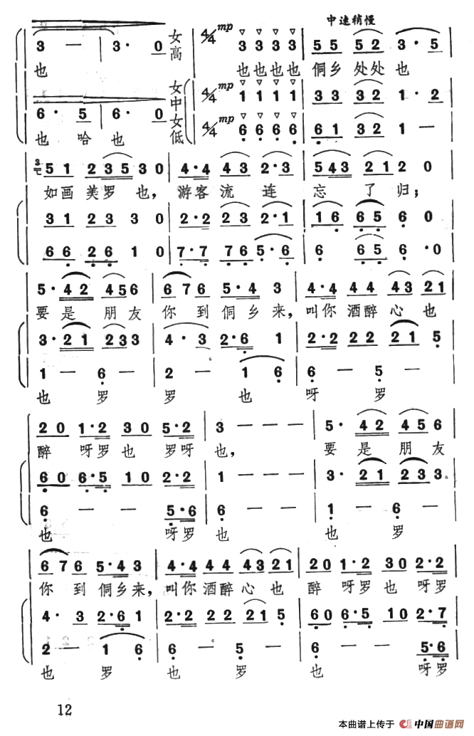 提示:在曲谱图片上单击右键,选择“图片另存为...”即可将曲谱保存到您的电脑中,打印时候可将图片插入到WORD中,调整合适大小打印即可。