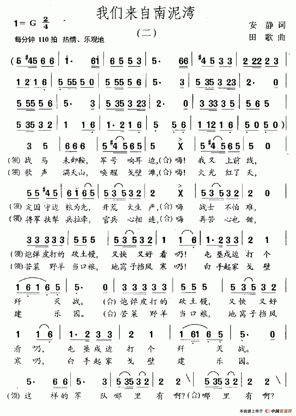 关于《我们来自南泥湾》曲谱的评论