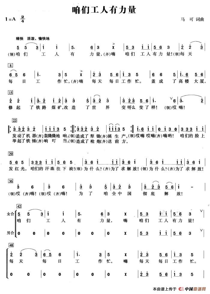 关于《咱们工人有力量》曲谱的评论