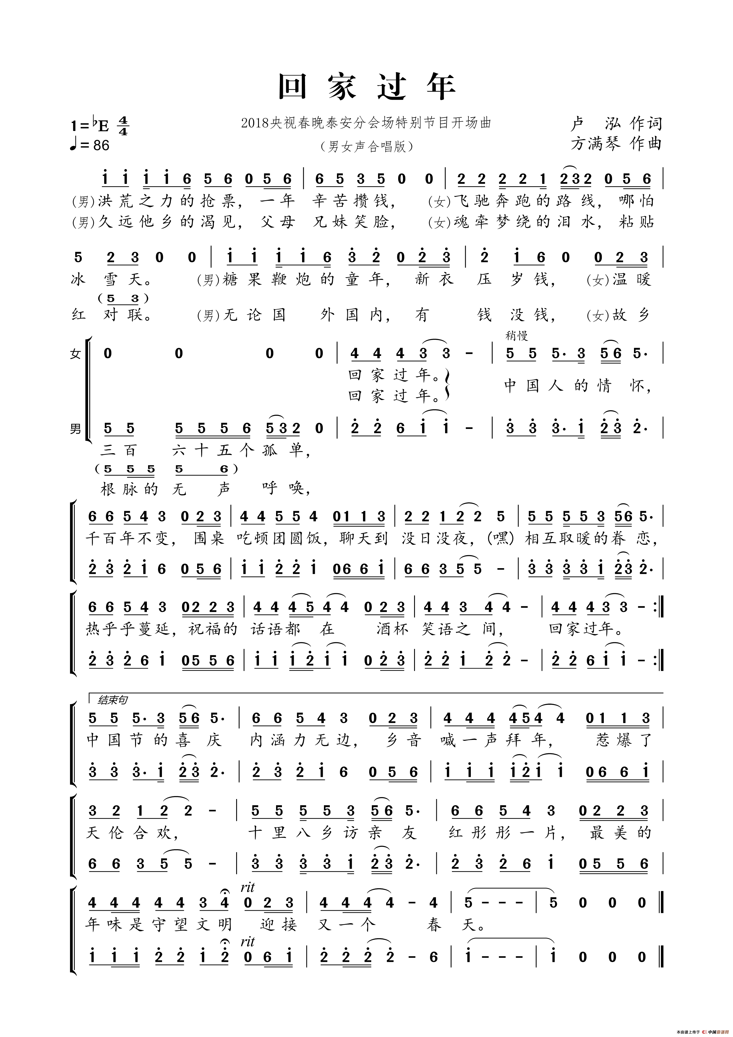 回家过年(卢泓词 方满琴曲)(合唱版)