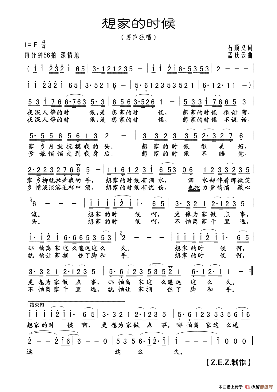 想家的时候(石顺义词 孟庆云曲)(1)_原文件名:想家的时候.GIF