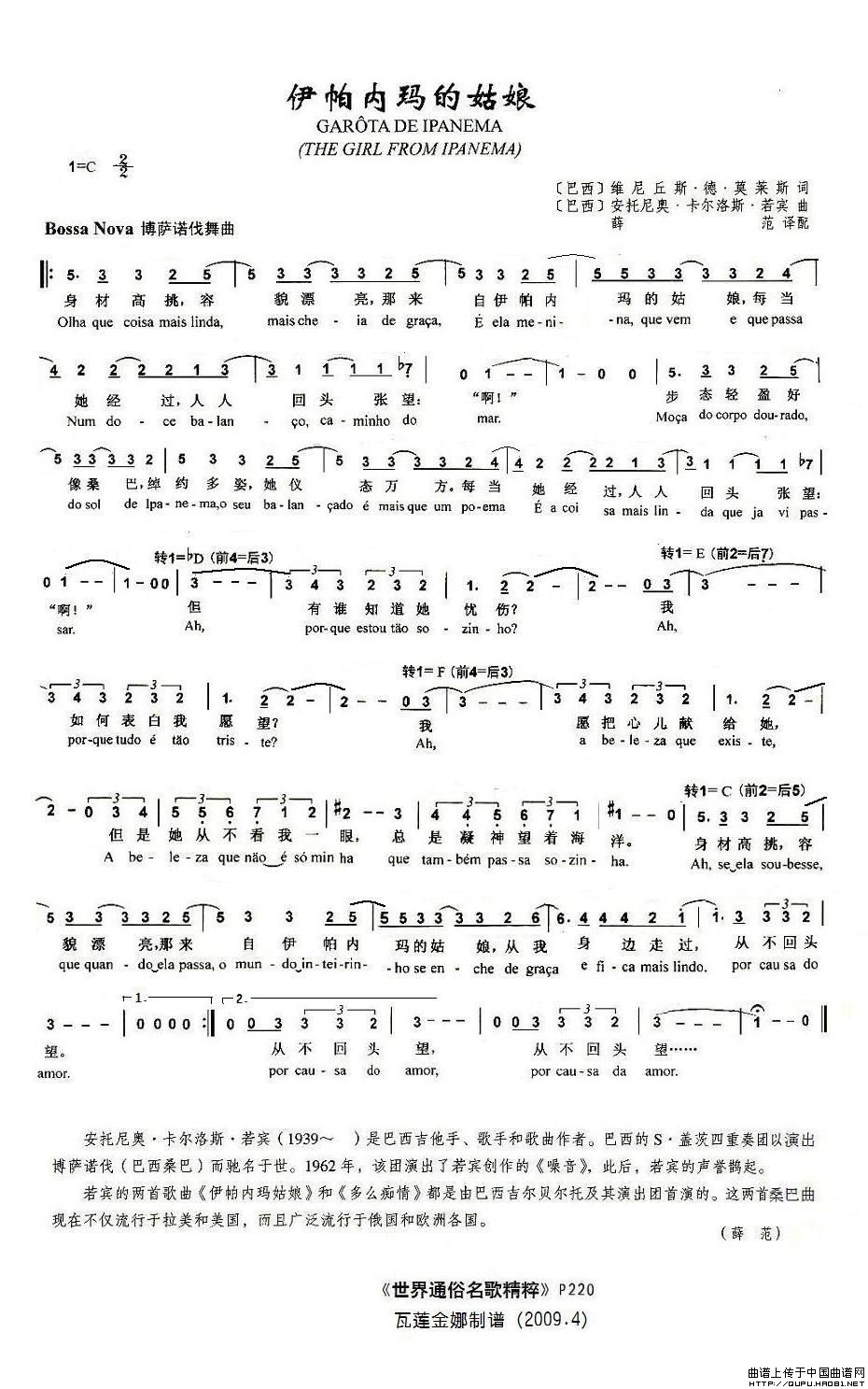 格式:简谱 来源:瓦莲金娜 制谱上传 上传:瓦莲金娜