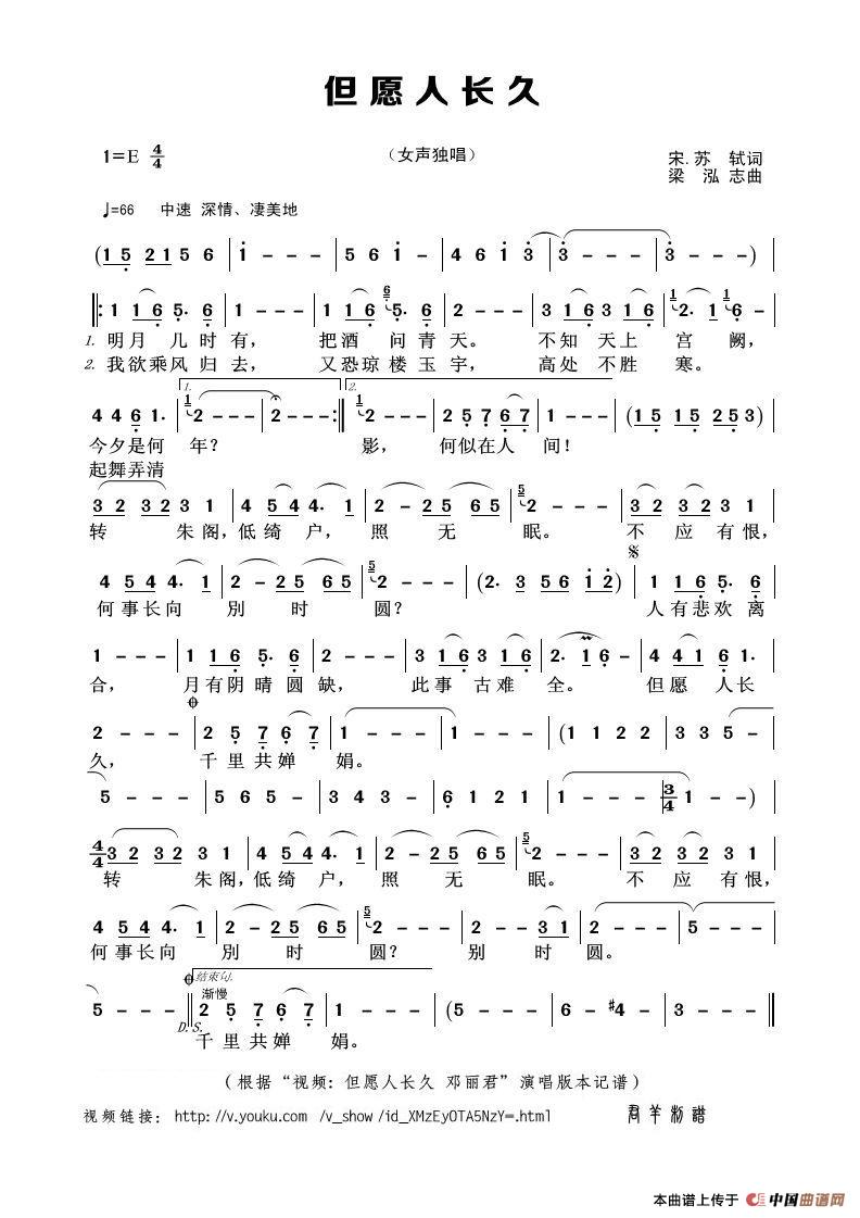作詞∶苏轼 作曲∶梁弘志 演唱∶王菲