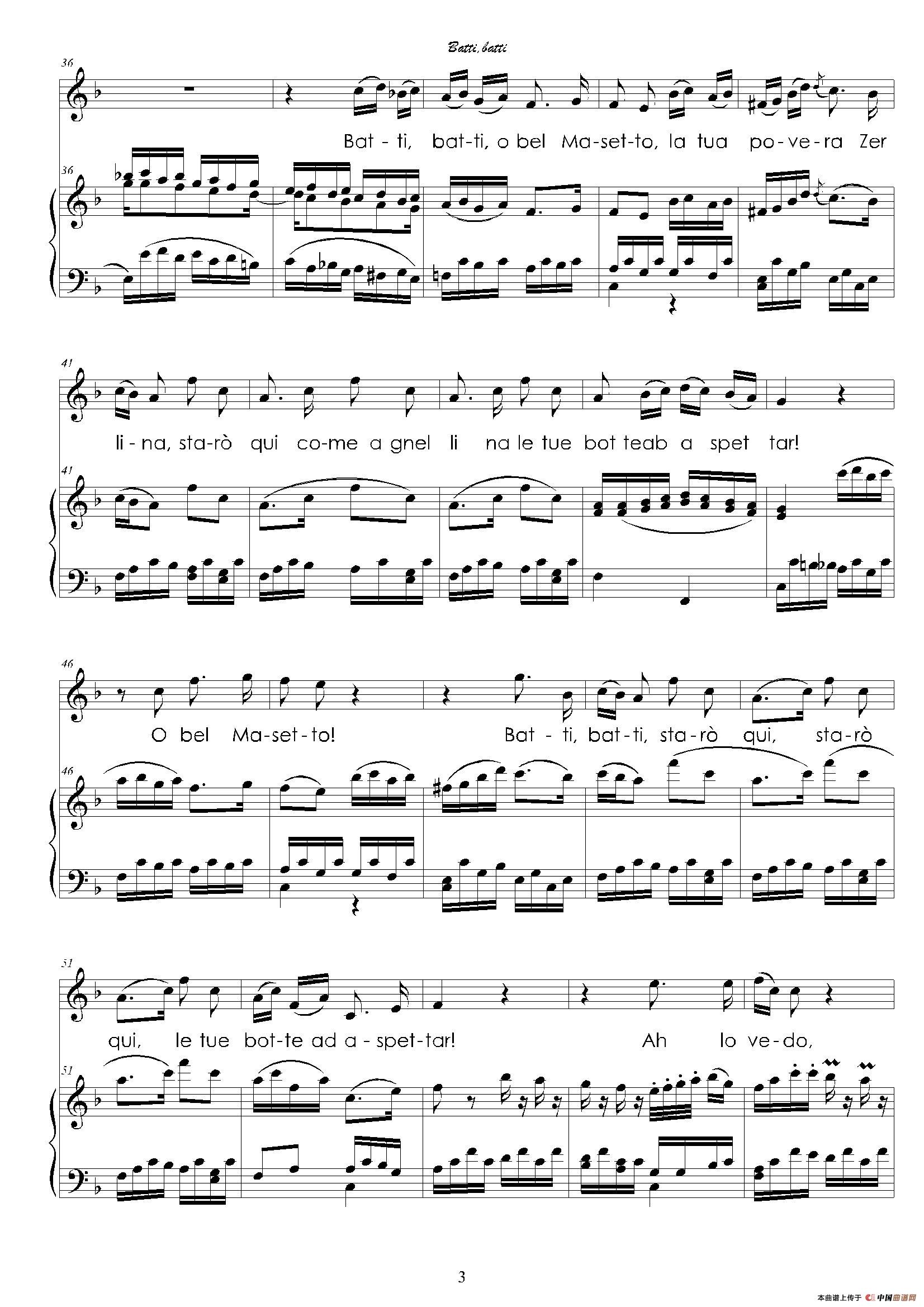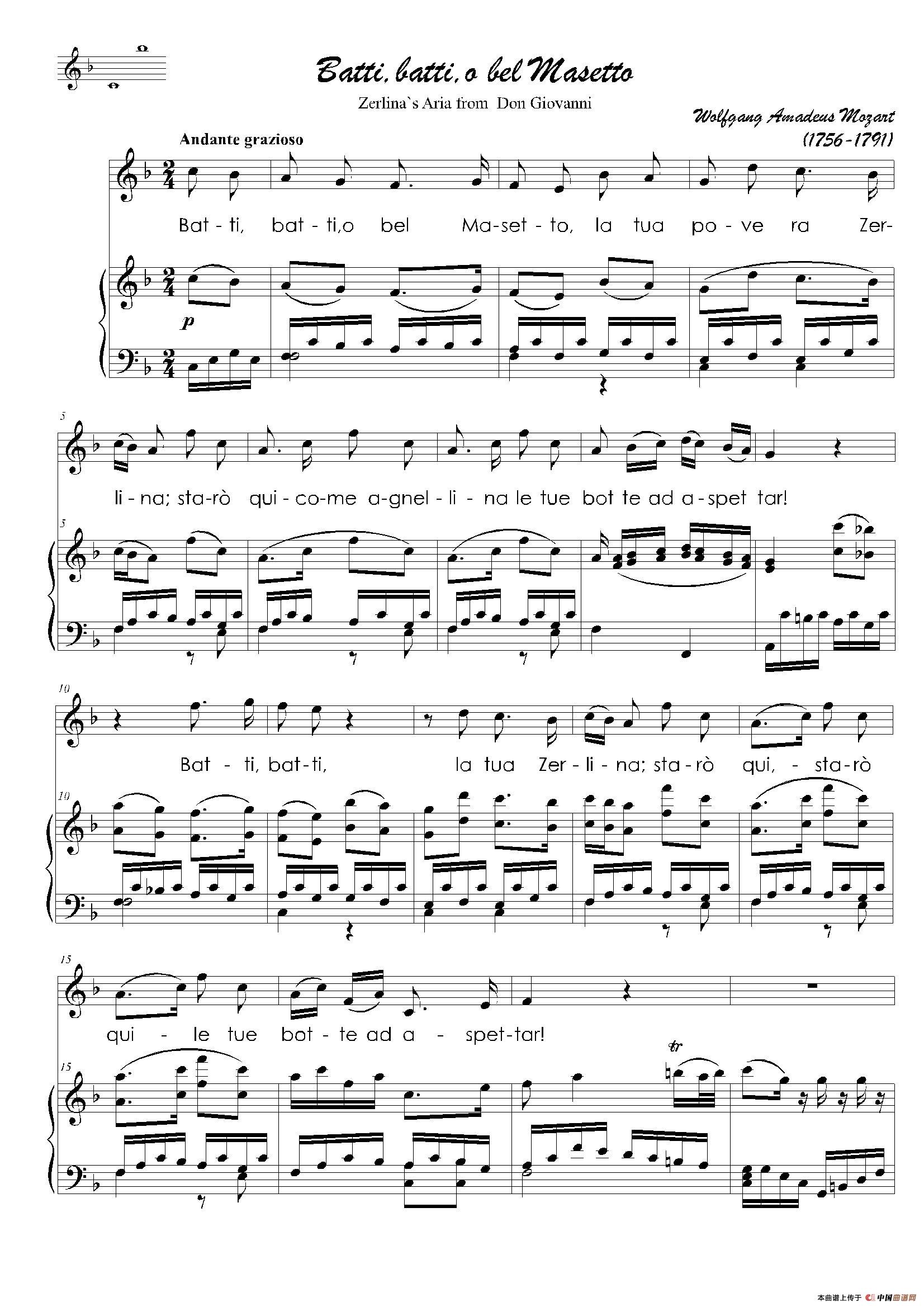 鞭打我吧,英俊的马塞托(歌剧《唐璜》咏叹调正谱)
