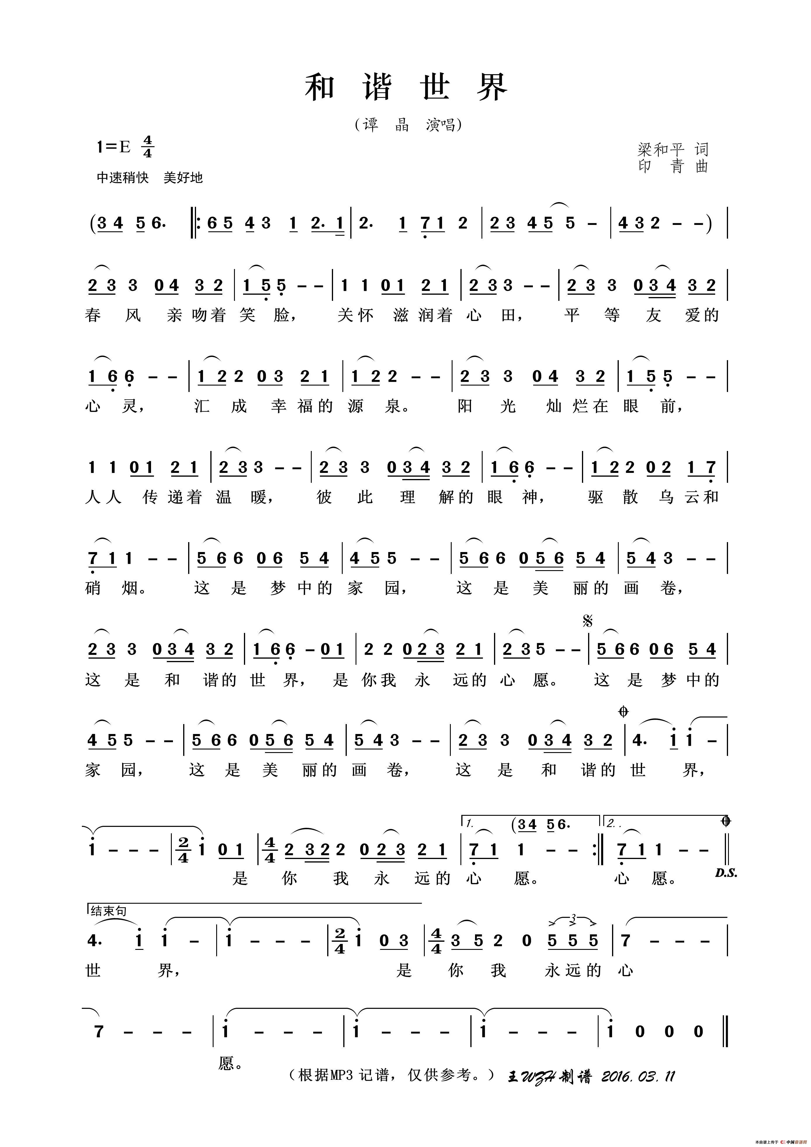 和谐世界(梁和平词 印青曲)