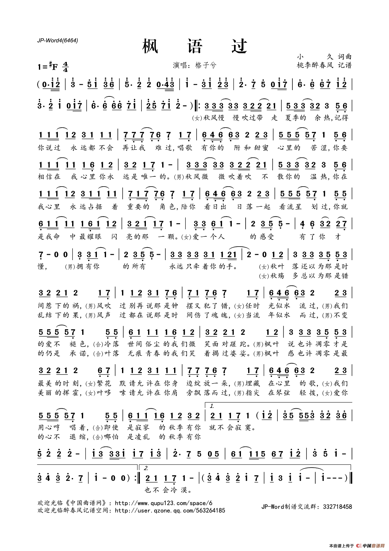 提示:在曲谱图片上单击右键,选择"图片另存为..."即可将曲谱保存到您的电脑中,打印时候可将图片插入到WORD中,调整合适大小打印即可。