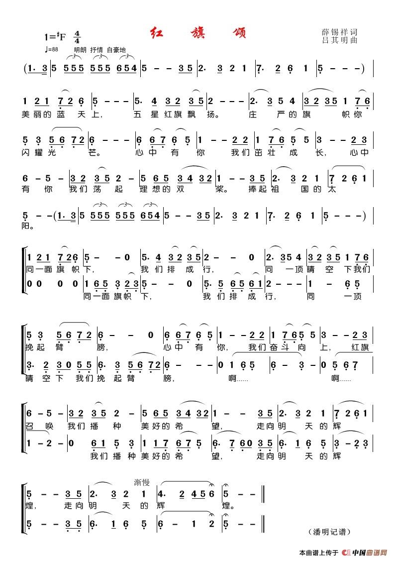 找了好多红旗颂的简谱,不是字太小,就是分辨率太低。终于找到您制作的简谱。太好了!谢谢您!