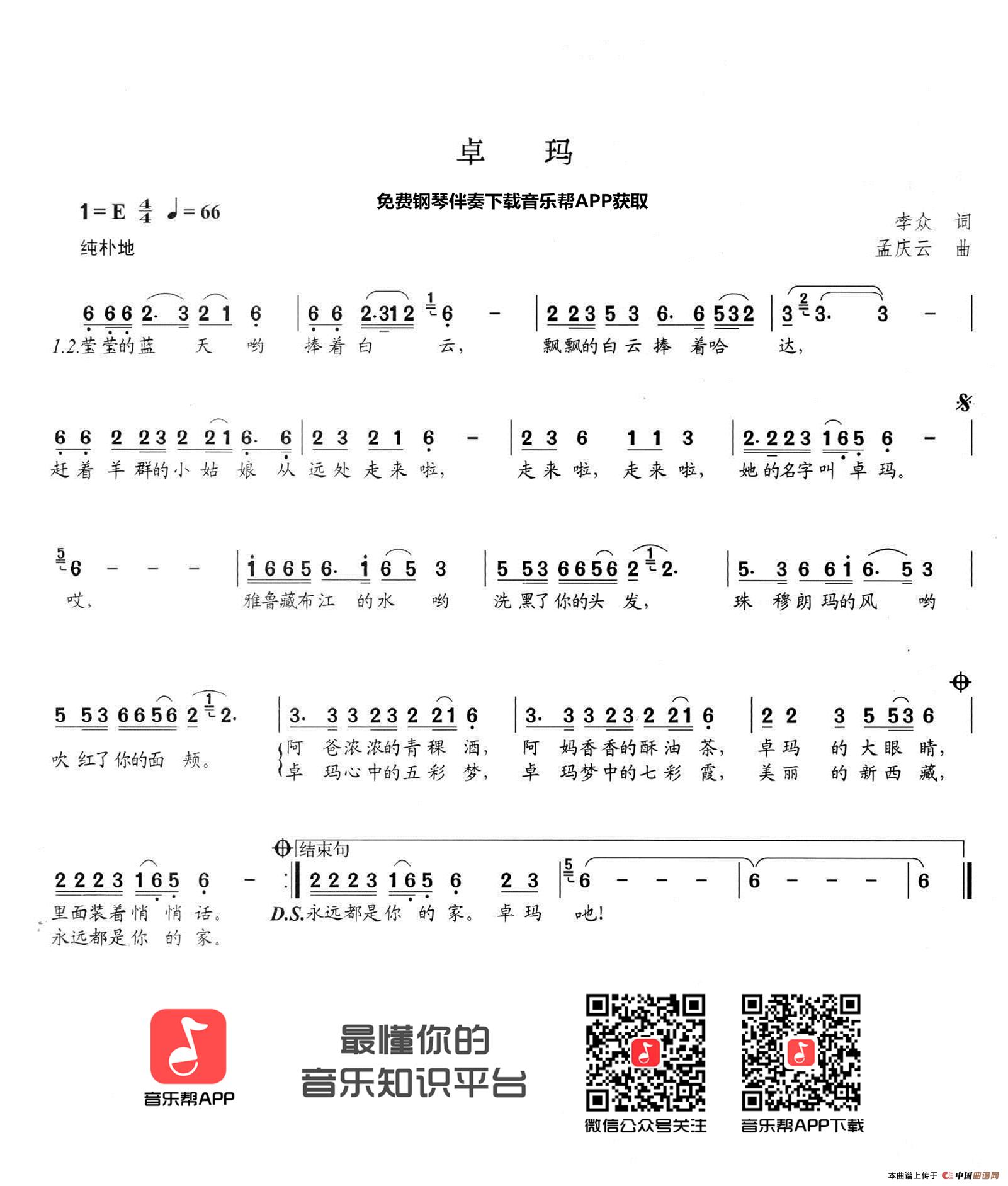 卓玛(李众词 孟庆云曲)(1)_原文件名:卓玛.jpg