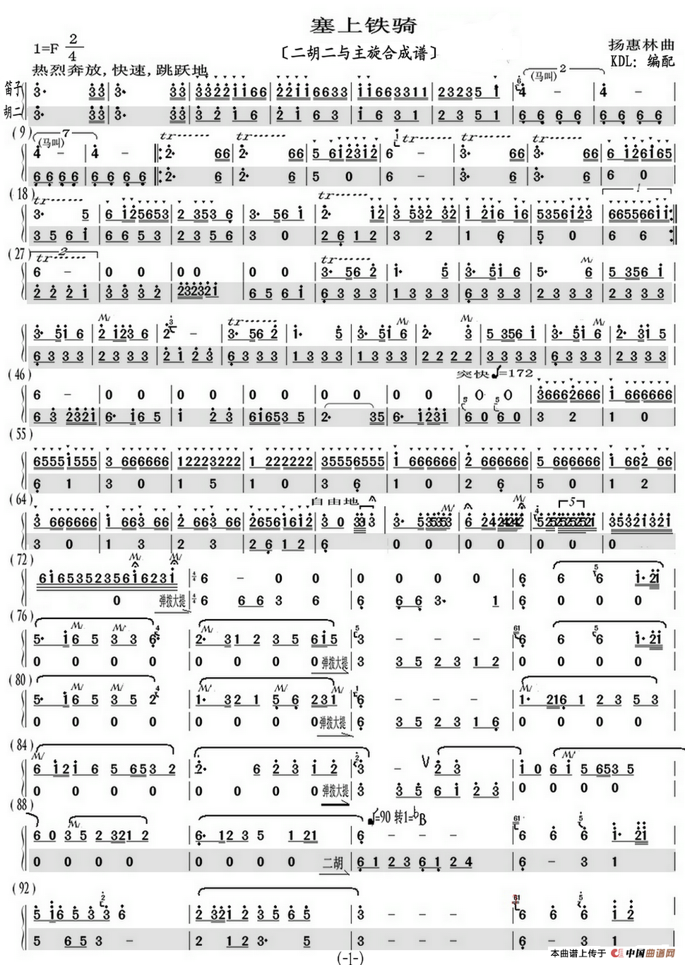 塞上铁骑(二胡二与主旋合成萤光谱)