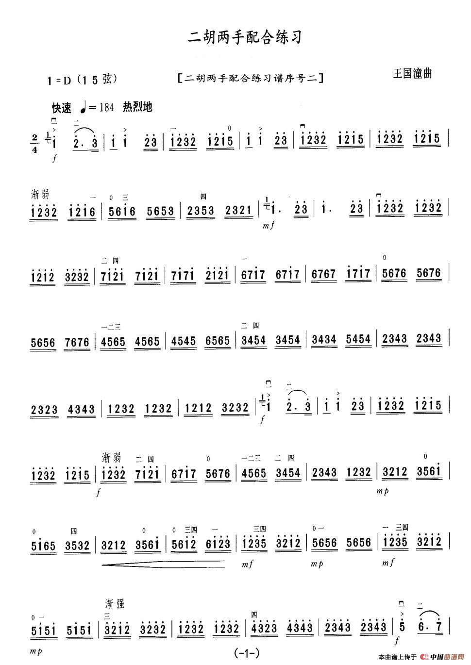 关于《二胡两手配合练习》曲谱的评论