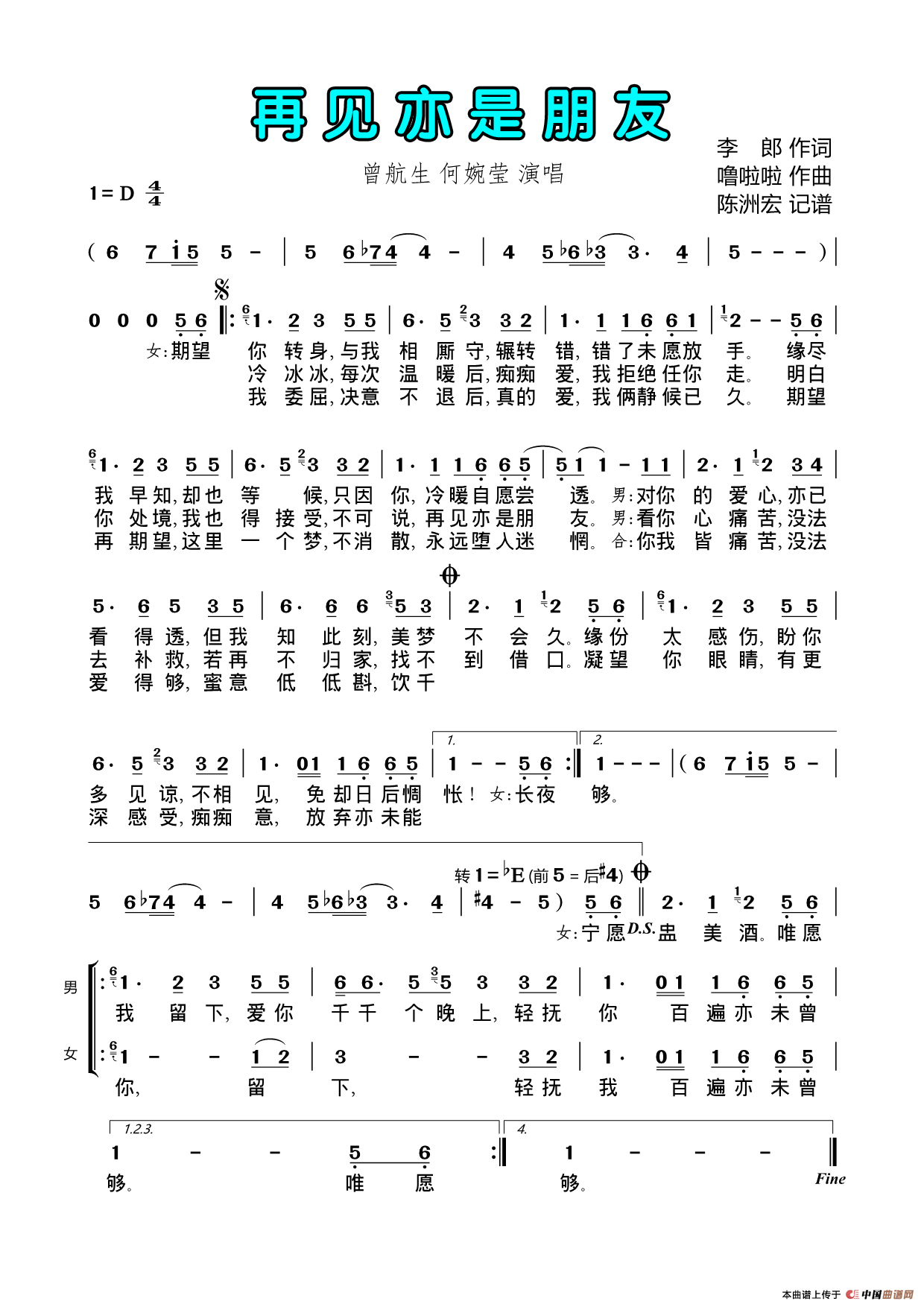 提示:在曲谱图片上单击右键,选择"图片另存为..."即可将曲谱保存到您的电脑中,打印时候可将图片插入到WORD中,调整合适大小打印即可。