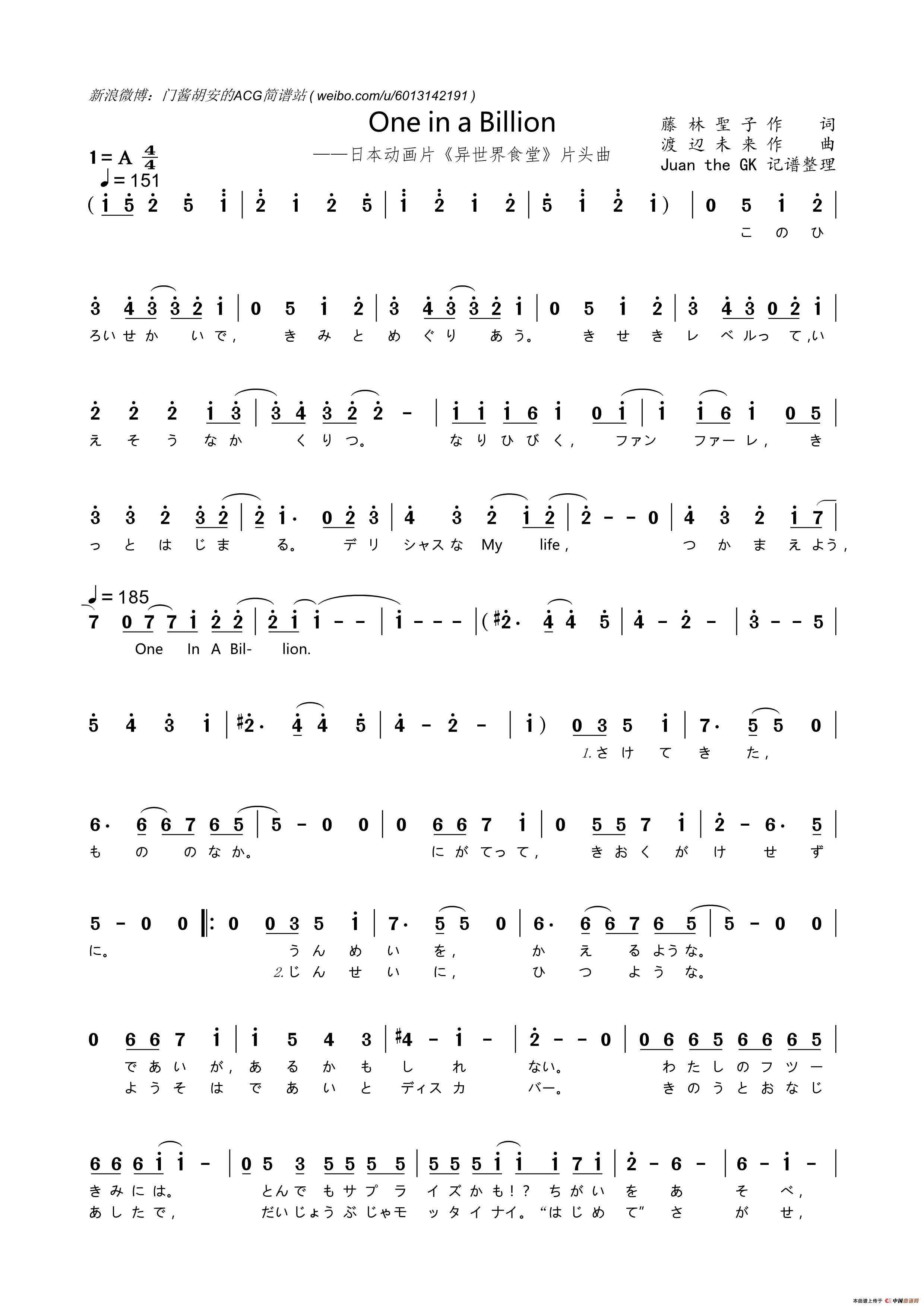 关于《[日]One in a Billion》曲谱的评论