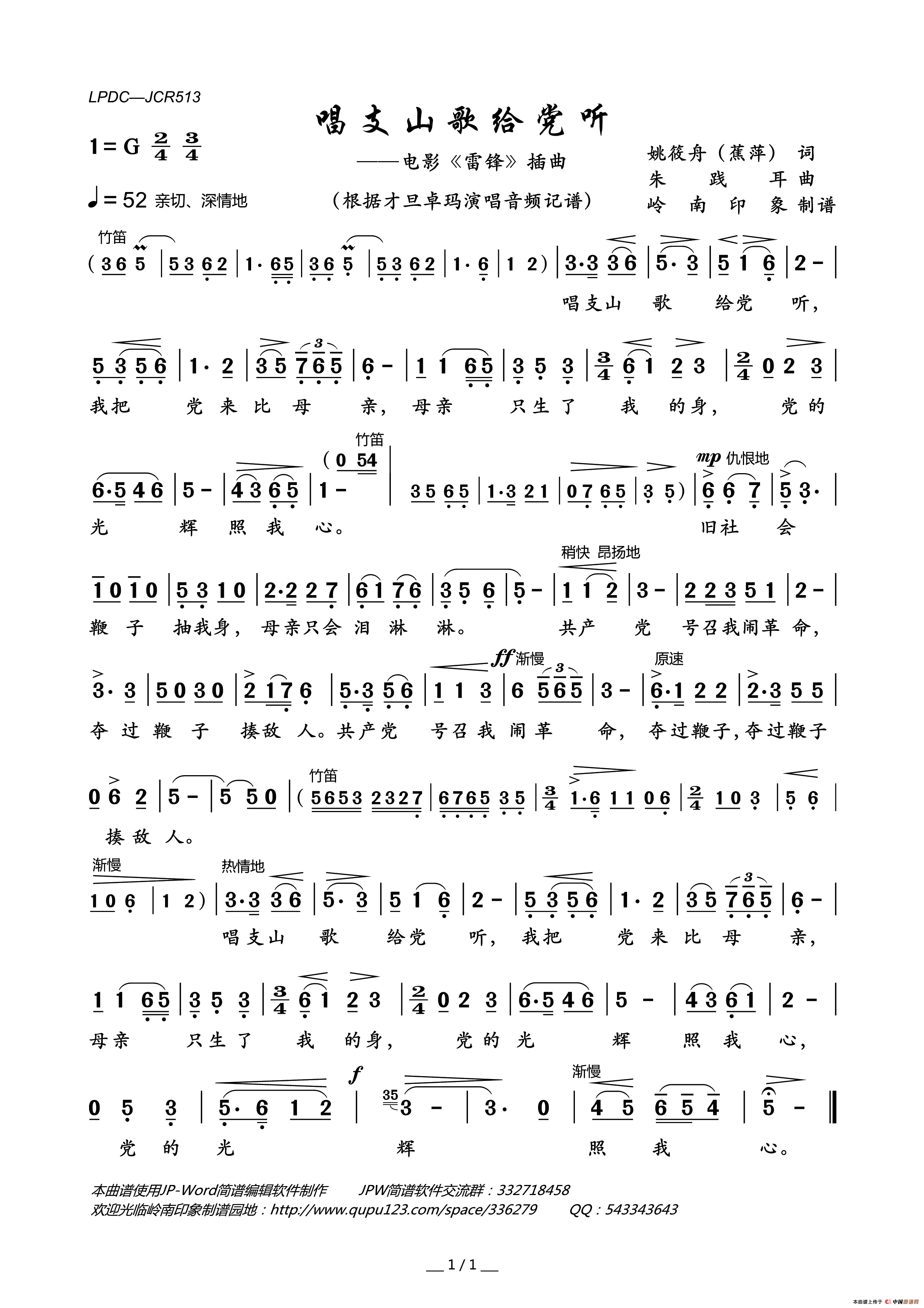 关于《唱支山歌给党听》曲谱的评论