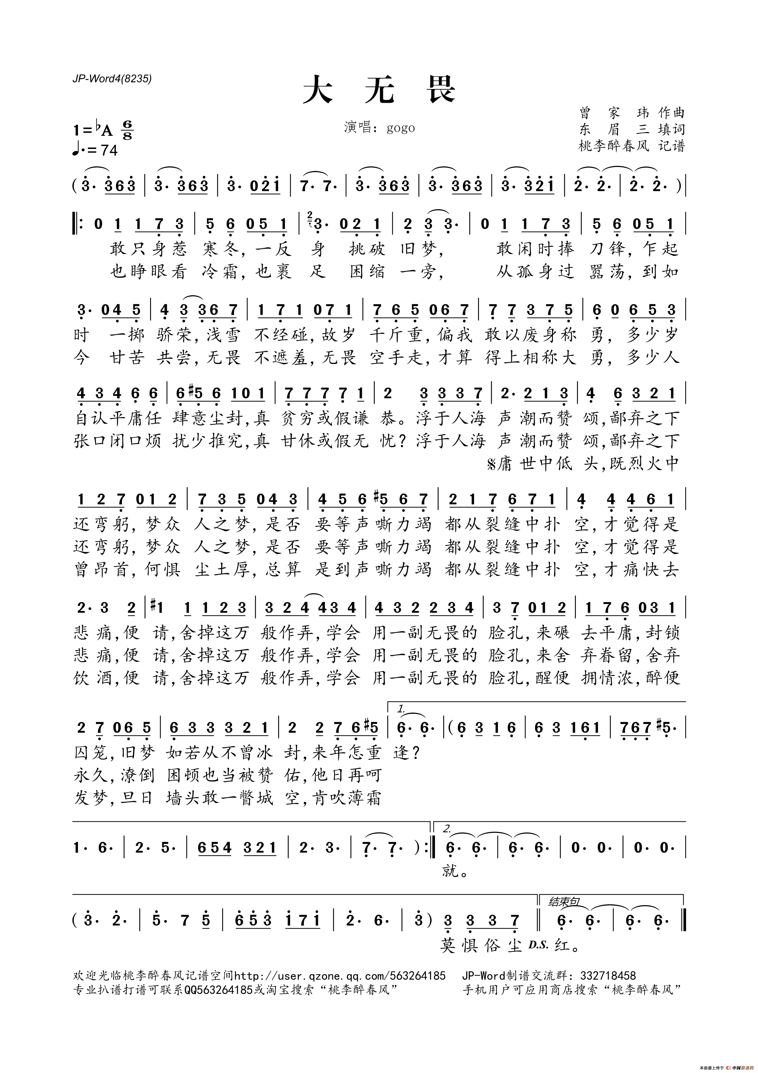 《大无畏》文本歌词