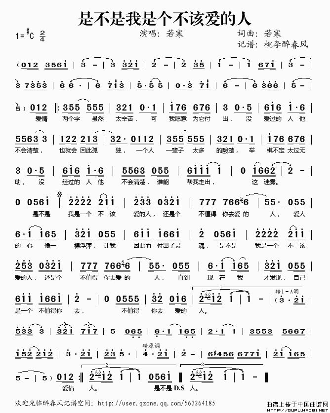作词:若寒 作曲:若寒 演唱(奏):若寒 格式:简谱 来源:桃李醉春风记谱 上传:桃李醉春风