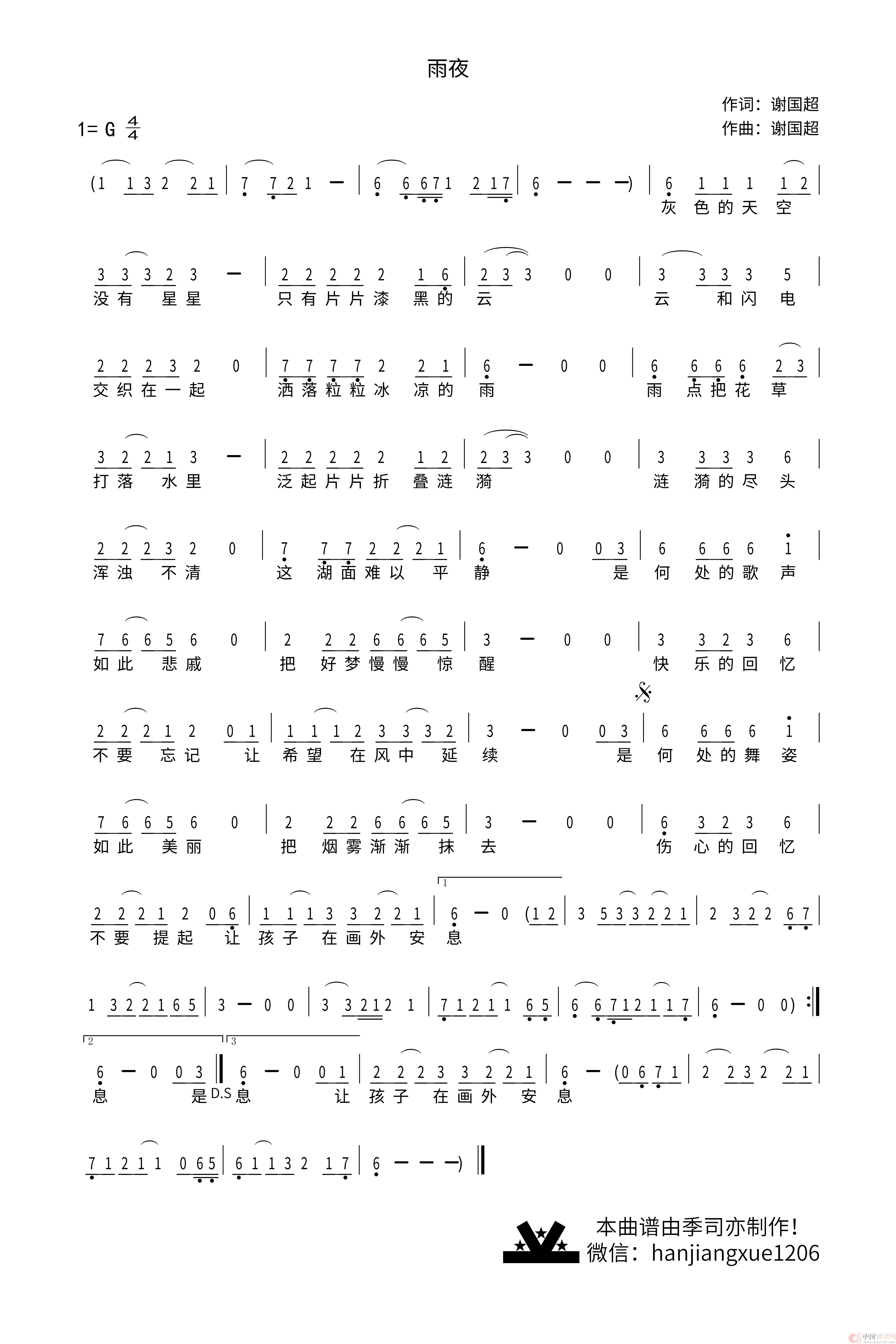 关于《雨夜》曲谱的评论