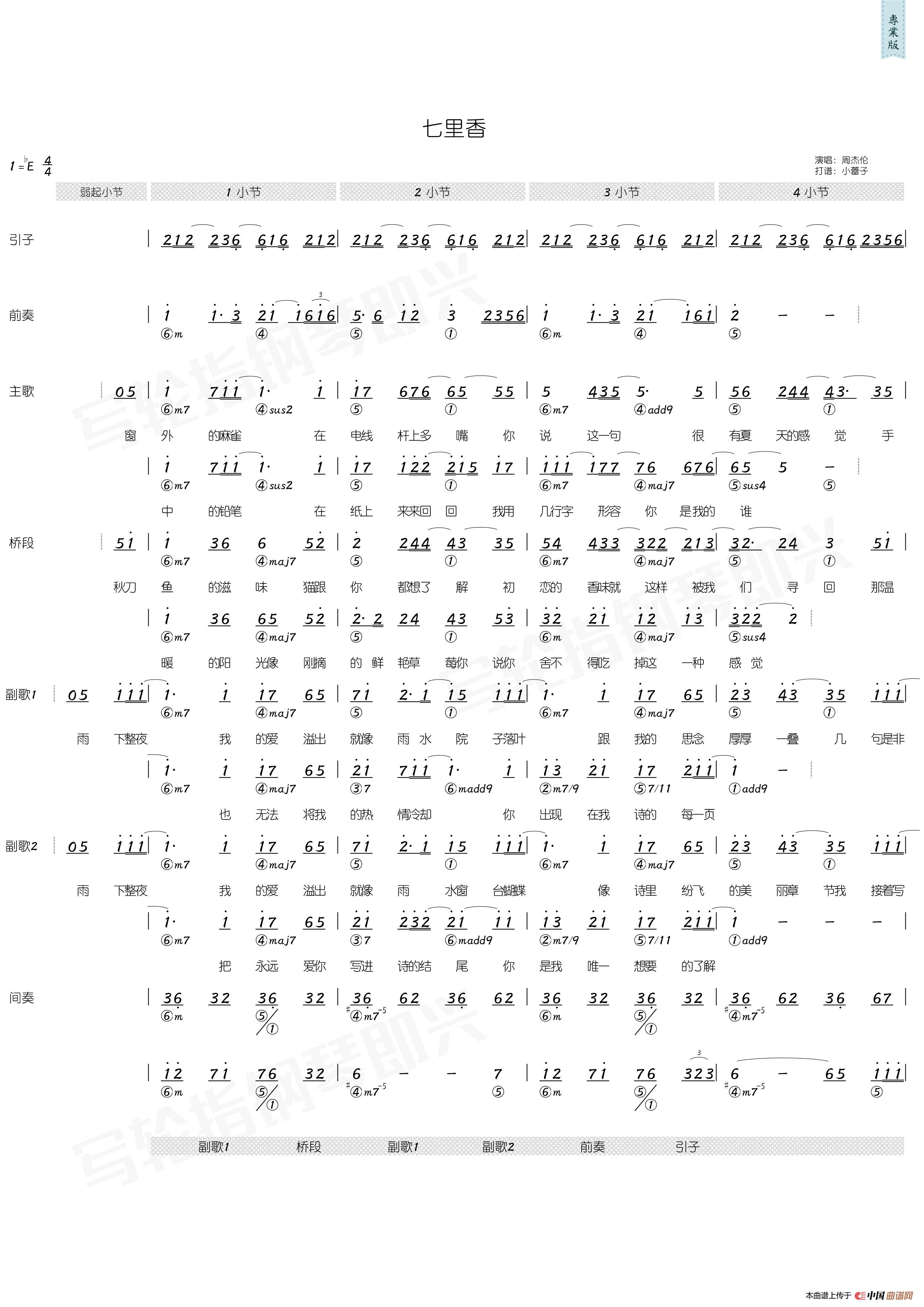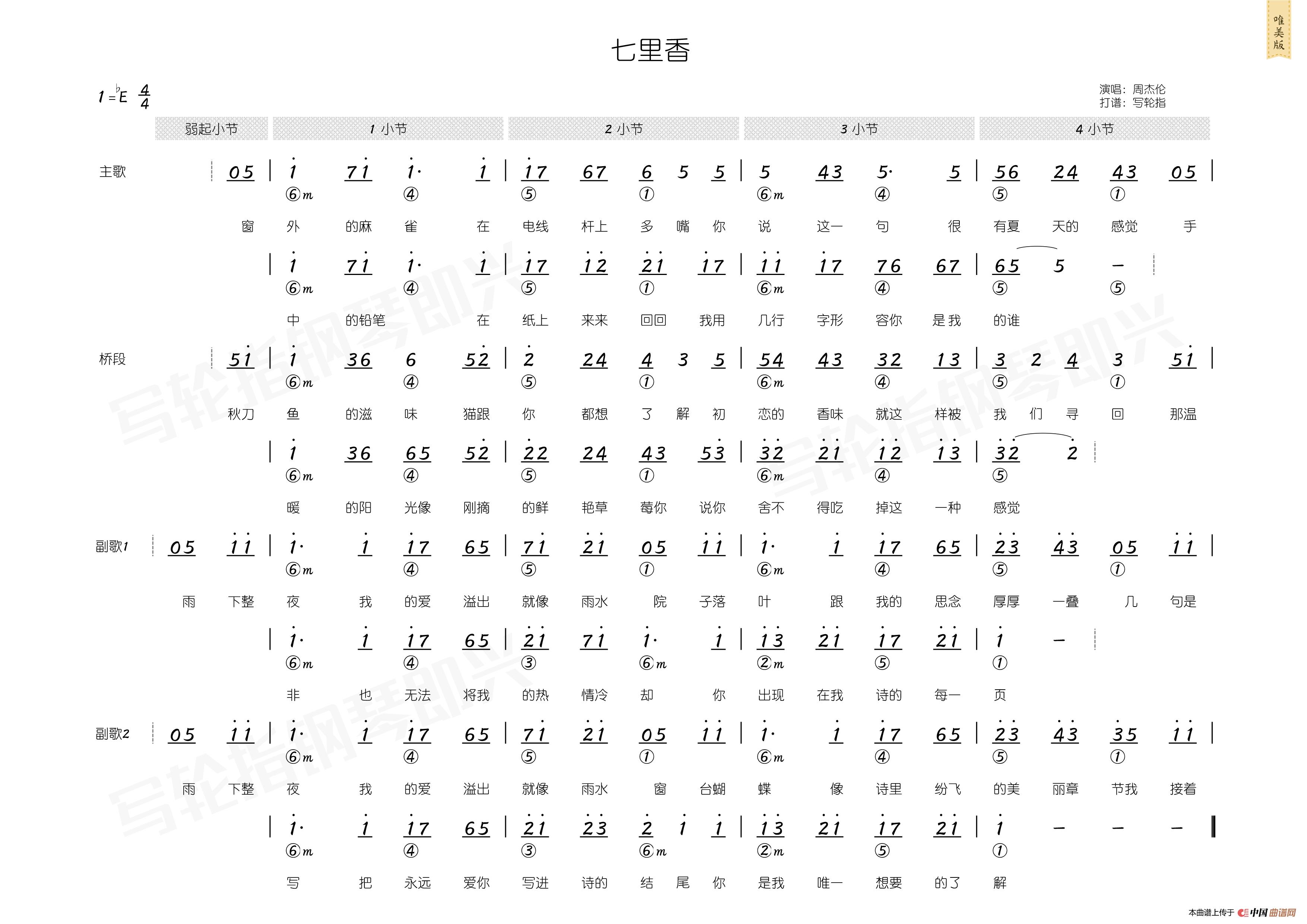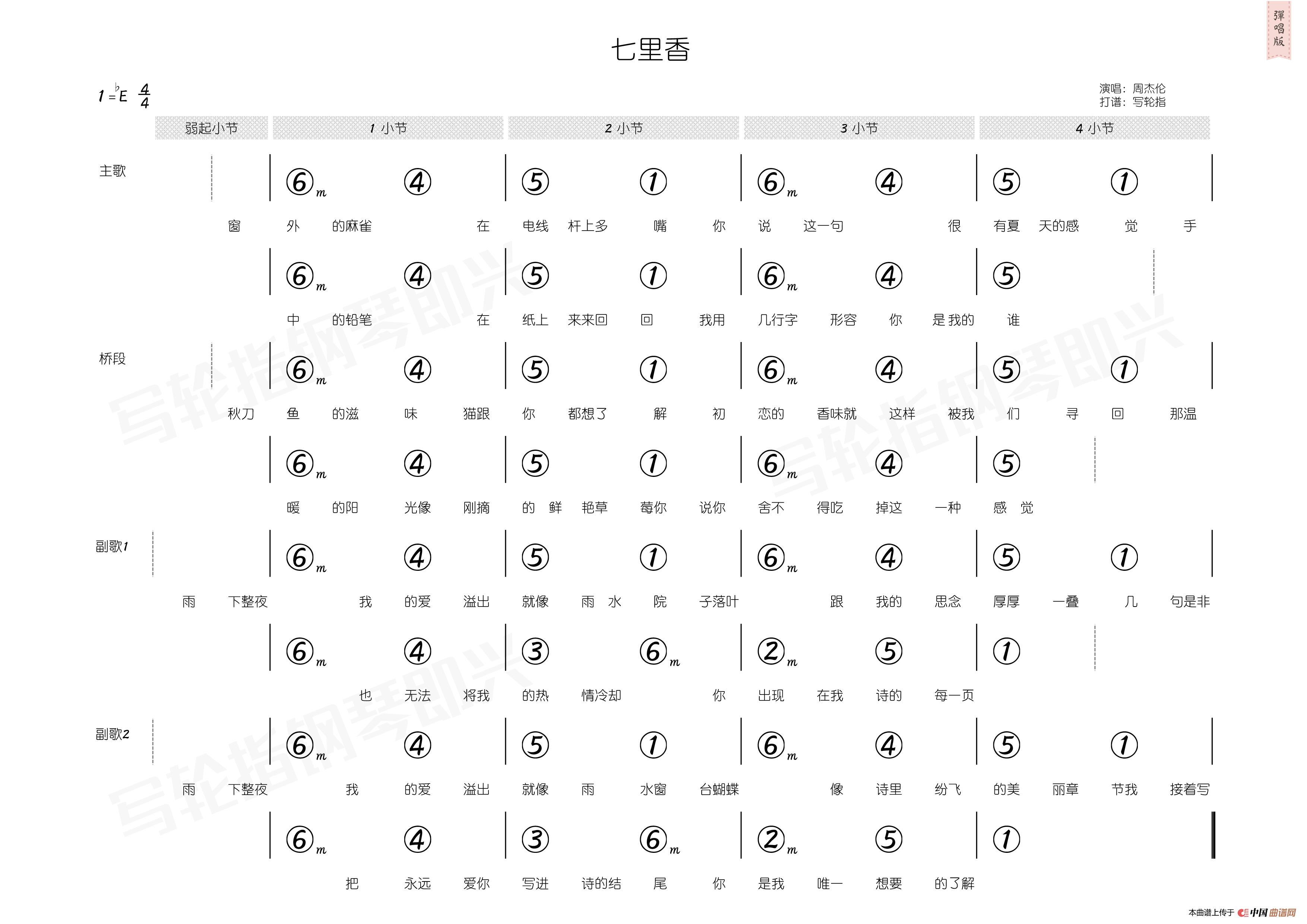 七里香(简和谱)(1)_原文件名:Q七里香-周杰伦(专业版).jpg七里香(简和谱)(1)_原文件名:Q七里香-周杰伦(弹唱版).jpg