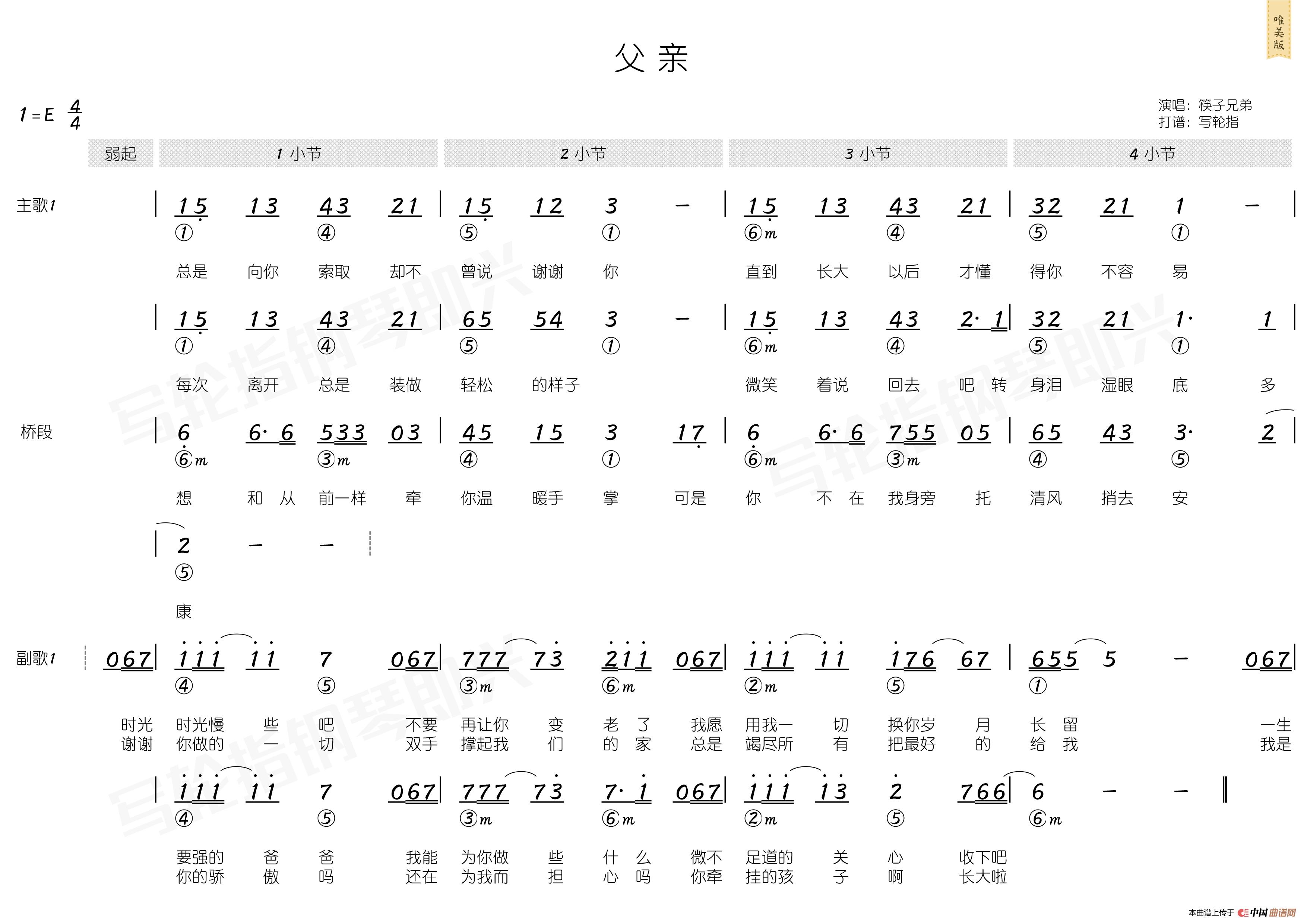 父亲(简和谱)(1)_原文件名:F父亲-筷子兄弟(专业版).jpg父亲(简和谱)(1)_原文件名:F父亲-筷子兄弟(弹唱版).jpg