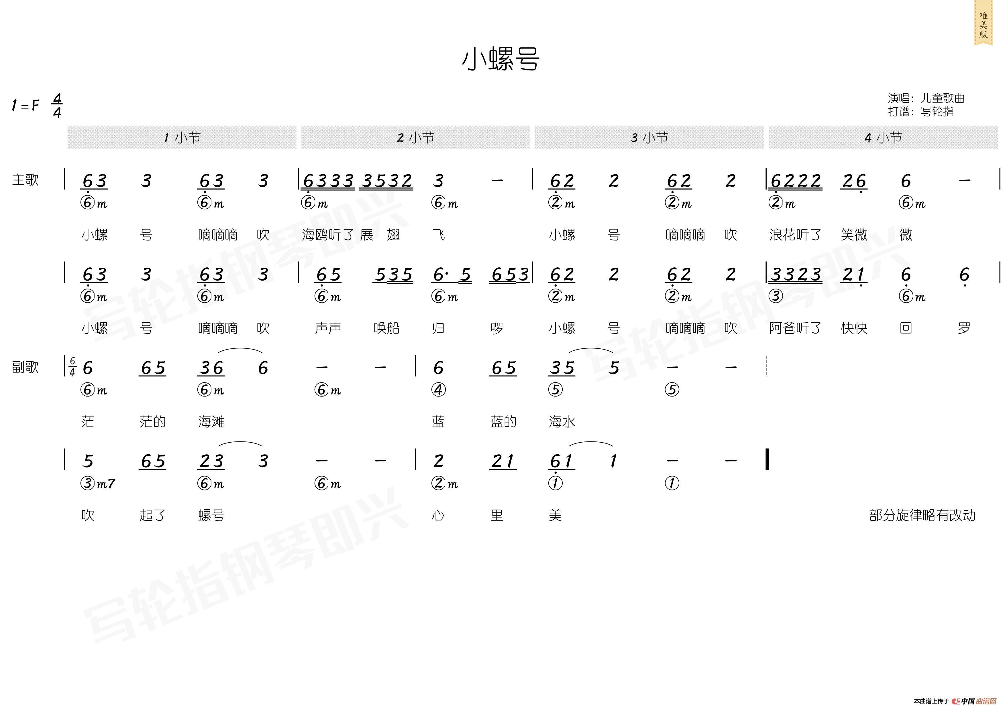 2.乐谱非常重视段落的划分,建议您在不同的段落用不同的伴奏型来演奏。